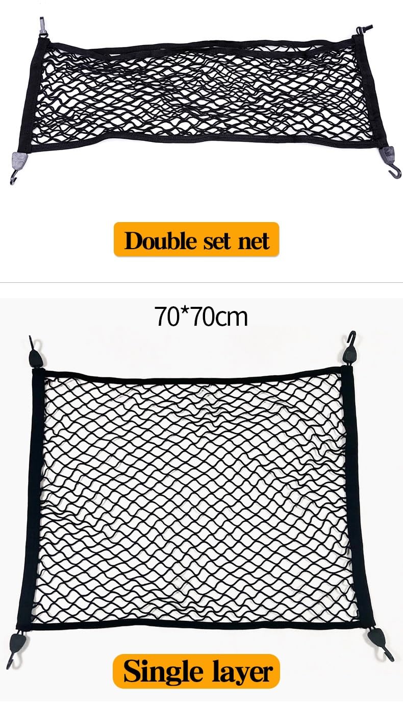 荷物カーゴオーガナイザーストレージインテリアメッシュポケットアクセサリー車のトランクネット汎用車SUV弾性。<br/><br/>購入する前に、購入した製品があなたのモデルとあなたの車に適合するかどうかを確認してください。<br/><br/>トランクスペースを分割して、収納を整理しやすくします。<br/><br/>製品名: 車のトランクネットバッグ<br/>適用車種:汎用車、SUV<br/>色の分類:ご注文の際は、車のモデルと年式に注意してください。または、カスタマーサービスにご相談ください。<br/>縦ネットは約230g、縦ネットは90×40cm(二層)<br/>平ネット約200g、平ネット70×70cm(単層)<br/>フラットスクリーンは約230g、フラットスクリーンは110*60cm(単層)です。<br/>フラットスクリーンは約230g、フラットスクリーンは110×60cm(二層)<br/>製品付属品: プラスチックフック * 4 個 + プラスチックボタンホール * 4 個 + ネジ * 4 個<br/>素材: ポリエステル<br/>設置場所:トランク<br/><br/>特徴:<br/>1. 商品を固定して転がりを防ぎ、保管と整理を行い、アクセスをより便利にします。<br/>2.車をより整頓し、破片を減らします。強くて耐久性があります。<br/>3.旅行時にトランク内のアイテムや荷物を固定するために使用されます。 車内で荷物が揺れないように簡単に固定できます。 4つのボタンホール+ 4つのフックを備えたすべてのトランクに適しており、トランクの種類に関係なく、取り付けることができます。 中ネットはナイロン素材なのでとても丈夫です。<br/>トランクをカバーし、エアコンの冷蔵スペースを減らし、エネルギーと燃料を節約します。