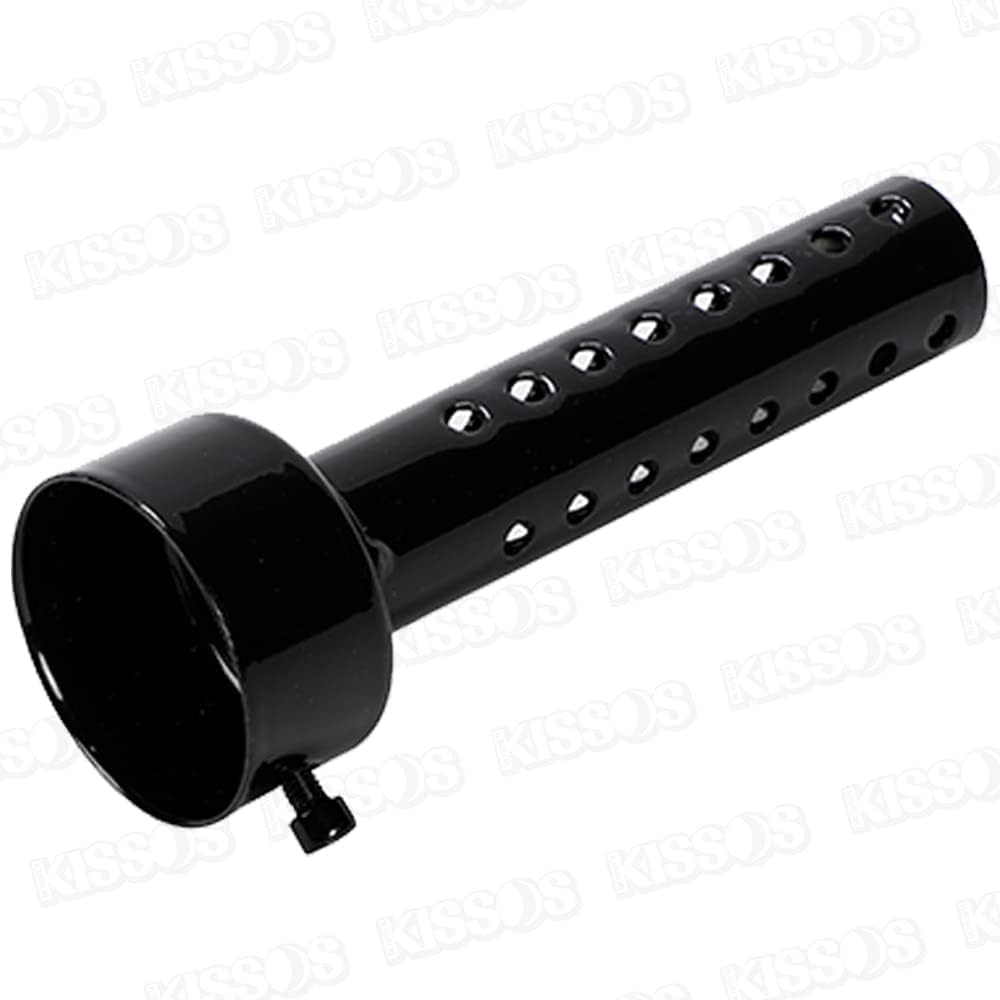 【バリエーション】ブラック。長さはロングタイプ(全長約140mm)とショートタイプ(全長約80mm)、取付部外径35/48/60mmからマフラーサイズに最適なサイズをお選びいただけます。愛車のデザインを損ねず消音効果を発揮します。