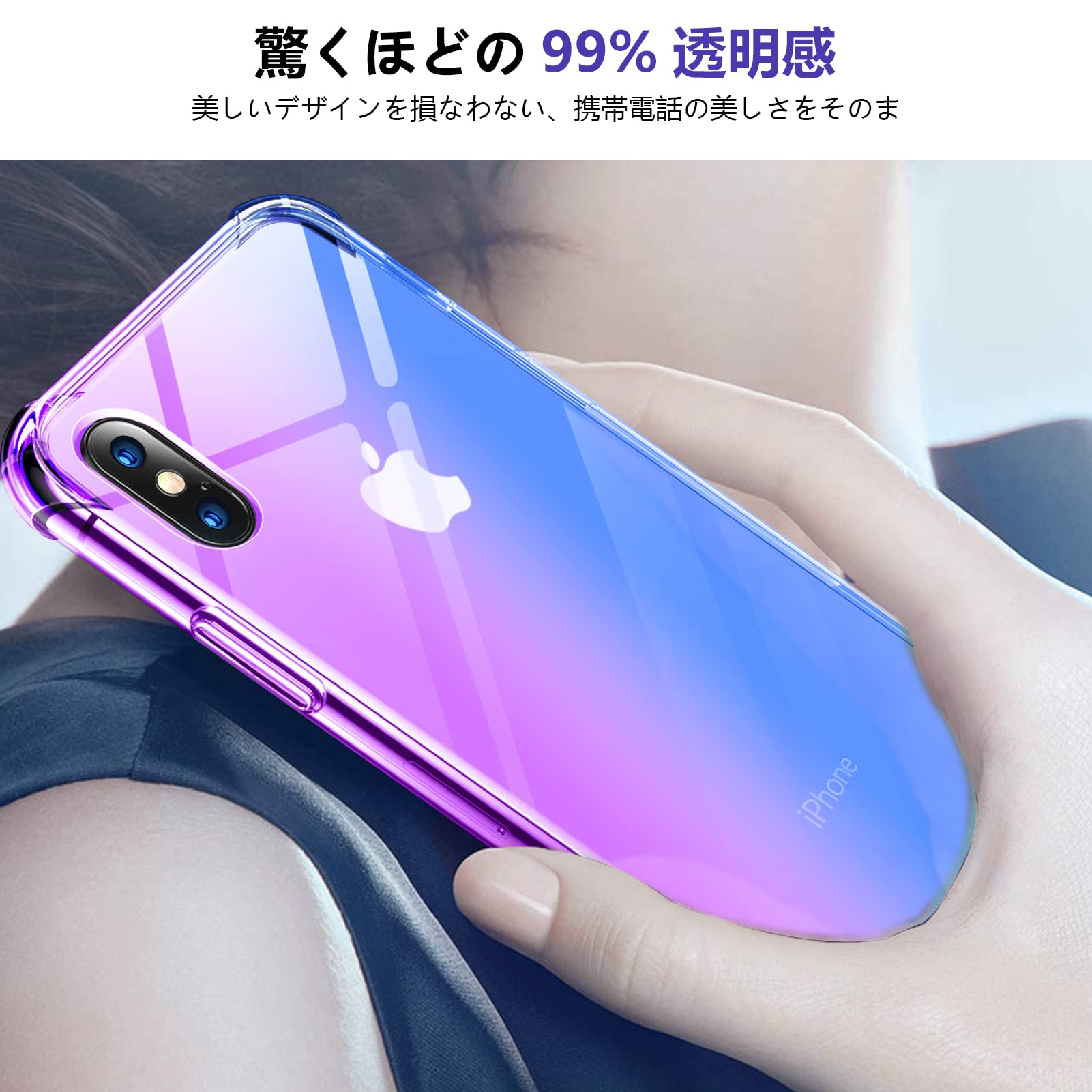 Arrows Be4 Plus F-41B ケース クリア 耐衝撃 薄型 グラデーション 透明 TPUバンパー 薄型 軽量 取り出し易い 全面保護 カバー 光学メッキ加工 おしゃれ 擦り傷防止 指紋防止 ストラップホール付き スリム 紫/ブルー MJJ-1044-68-5