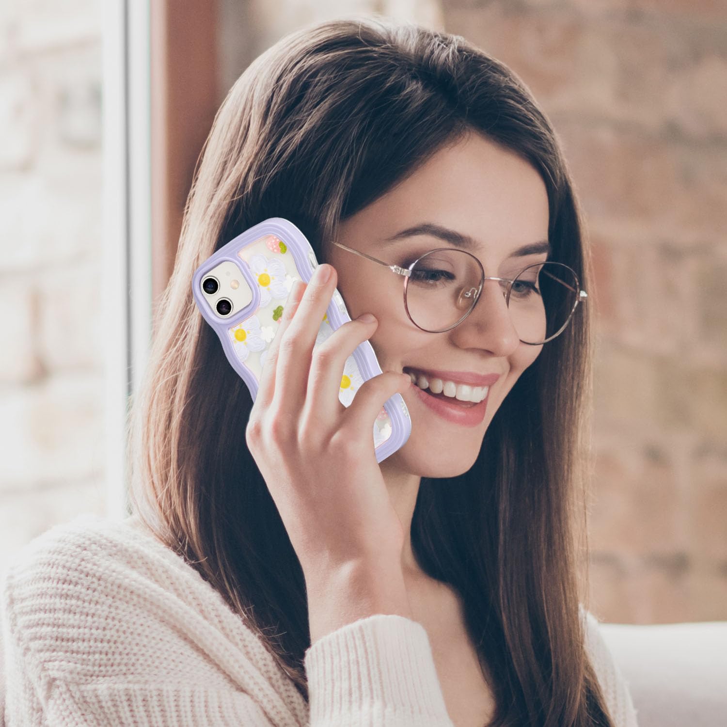 QLTYPRI iPhone 11ケース クリア TPUカバー おしゃれ 韓国 可愛い 透明 薄型 軽量 耐衝撃 スマホケース ワイヤレス充電対応 ストラップホール付き アイフォン 11 ケース 6.1インチ 対応 - パープルフレーム & 花柄