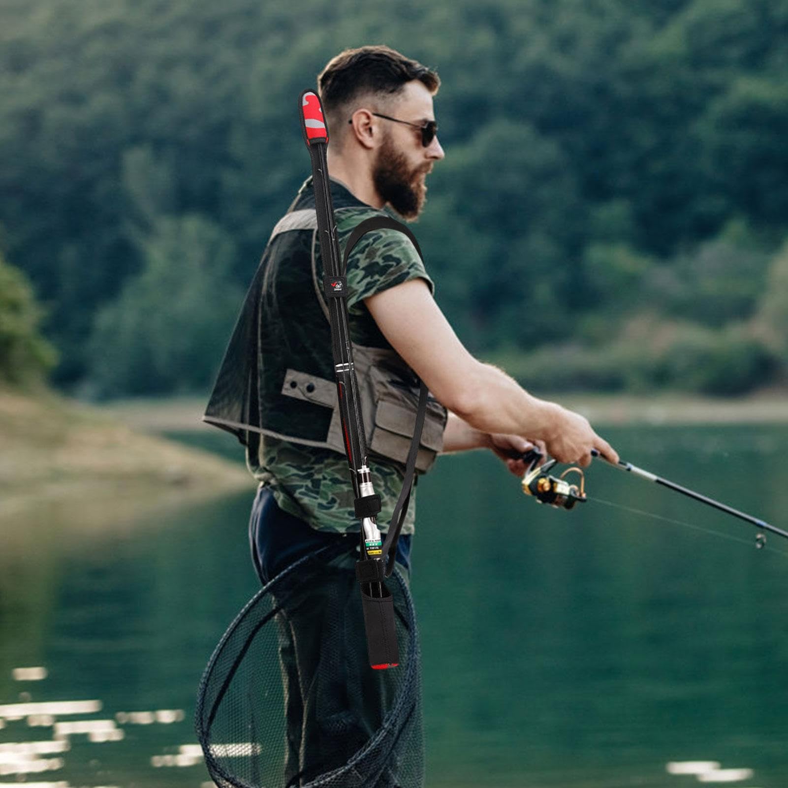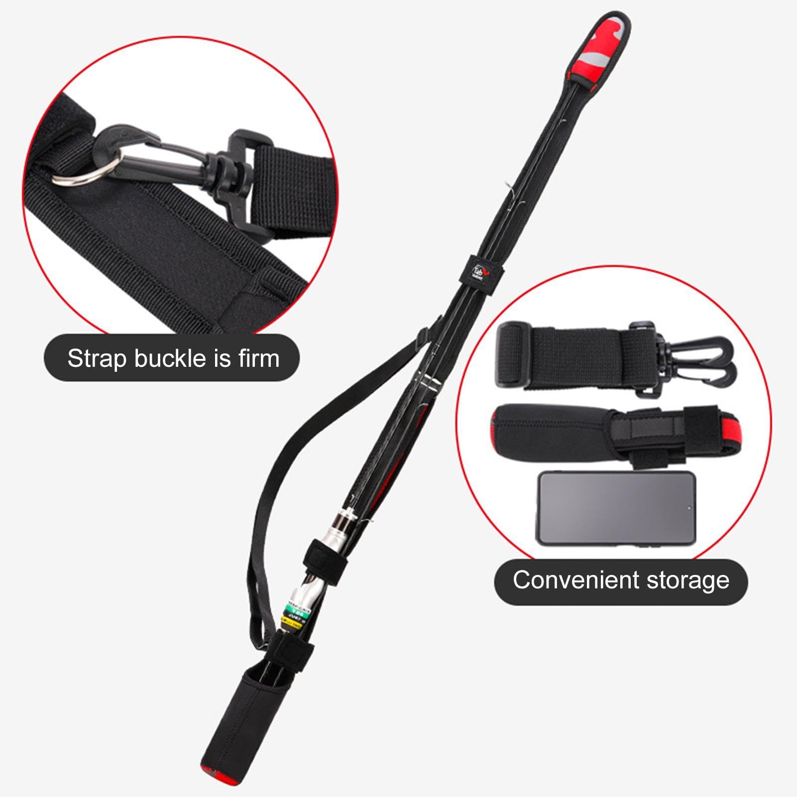 釣り竿ストラップキャリー, ロッドホルダー用スリングショルダーベルト ラップストラップ スリングバンド, 調節可能な耐摩耗性ポータブルロッドスリングバンド、ビーチフィッシングアングラーシーロック用 | マボロシ商店