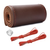 Ziciner 本革ハンドルカバー ステッチオンラップ 通気性 滑り止め カーステアリングホイールプロテクター 最大直径15インチ用 DIY縫製 針糸付き (コーヒー、光沢)