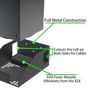 優れたXboxシリーズXアクセサリー。 アンダーカットの通気孔はXbox Series Xベースに1:1で正確に位置合わせします。下から後方に十分な通気孔が効果的に熱を放散し、激しいゲームセッション中もコンソールを涼しく保ちます。