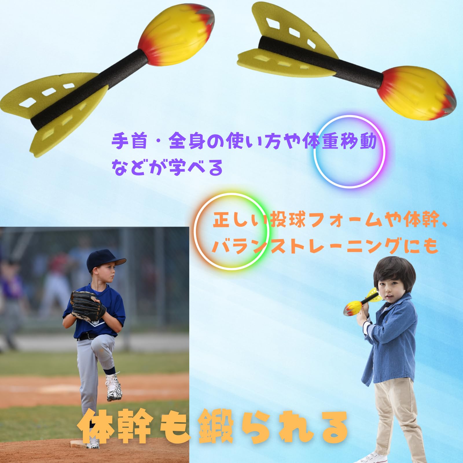 "【ジャベリックボール2個セット】子供から大人まで楽しめる弓矢の形をしたジャベリックボール。槍投げの練習に最適。野球や陸上競技にも使えます。<br> 【アウトドアやスポーツの練習に最適】ジャベリックスローはピッチャーの練習にも注目され、スピードアップや投球フォームの改善に役立ちます。陸上競技大会で正式に種目として実施されているジャベリックスローの練習に最適なボールです。<br> 【体幹を鍛えるのに最適】手首や全身の使い方、体重移動などを遊びながら学べる。正しい投球フォームや体幹、バランストレーニングにも最適。<br> 【お子様にも安心】ポリウレタン素材で柔らかく、痛くない。ロケット型で転がらず、屋外でも安心して遊べます。<br> 【サイズ・仕様】ジャベリックボール2個セット。サイズ:全長24㎝/ヘッド長さ10×直径6.3㎝。重量 約50g。カラー:イエロー&シルバー。"