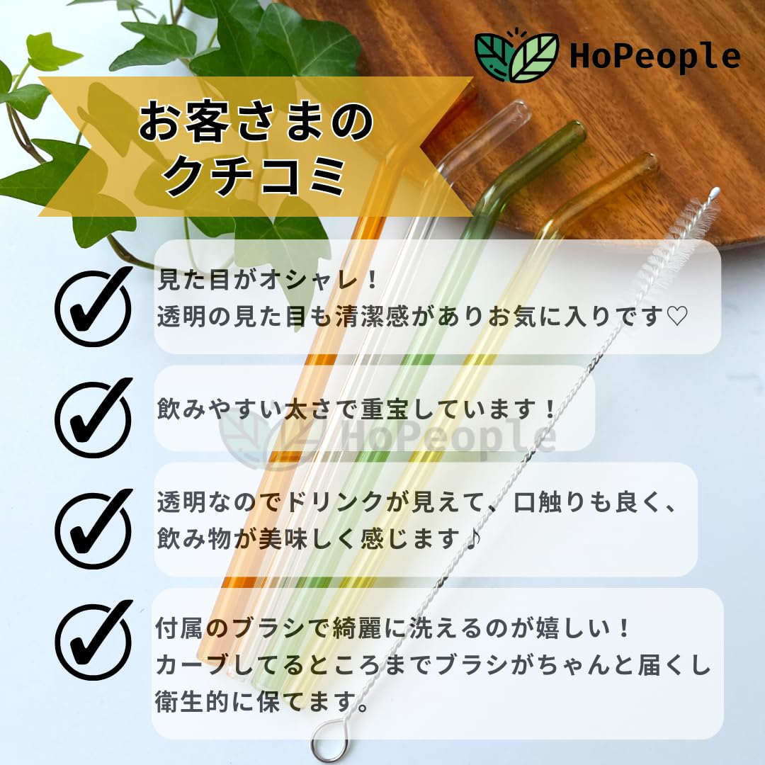 HoPeople ガラスストロー マイストロー 4本セット ブラシ付き ガラス製 (カラーA)