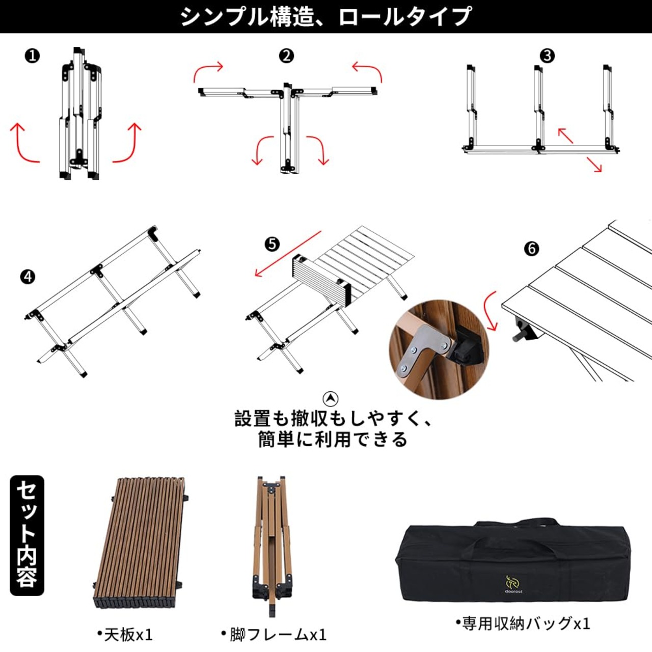 deerestキャンプテーブルEASY GO seriesロールテーブルロールタイプ炭素鋼折りたたみ軽量コンパクト組立簡単インテリア アウトドア/キャンプ卓