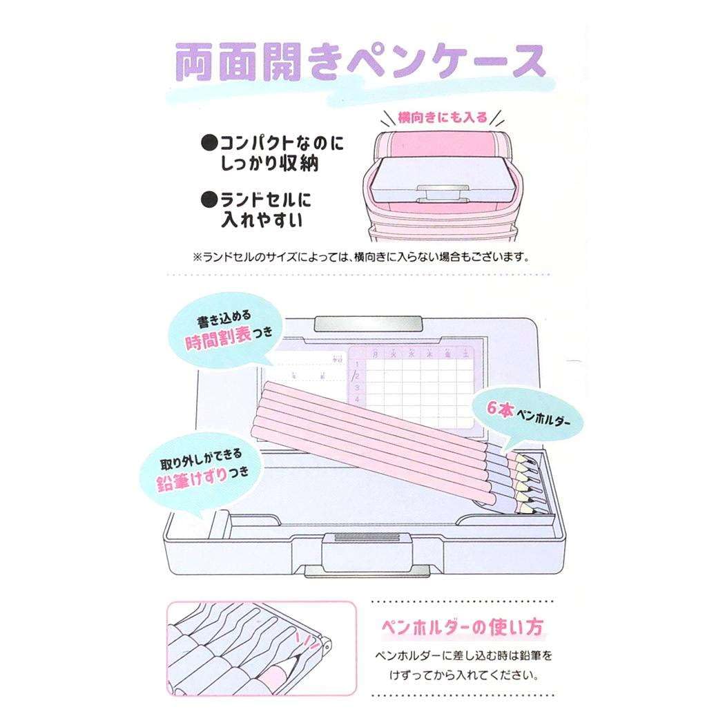 新入学新学期にぴったりなステーショナリー こちらは定番アイテム【コンパクト両面開きソフトペンケース】 開閉がスムーズなワイドマグネット付き両面開き仕様。 取り外し可能な鉛筆削りやえんぴつホルダー&名前ペン収納スペース付き。 便利な時間割り表も付属。 ■サイズ:約220×85×28mm