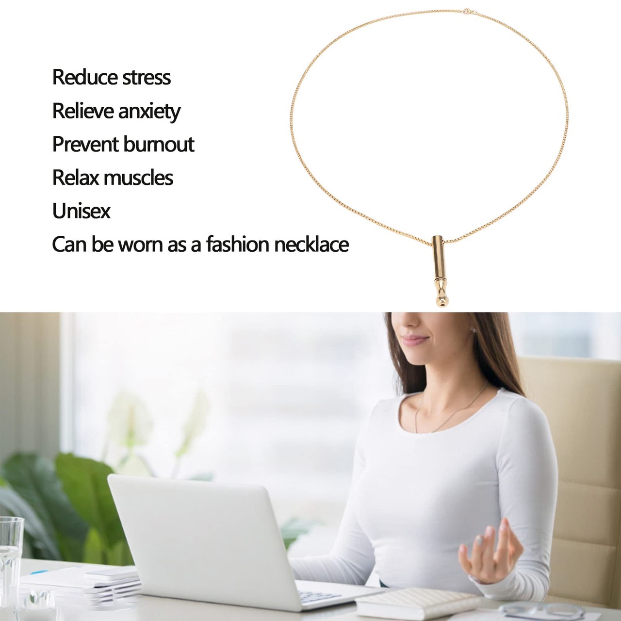 多機能: このネックレスはストレスや不安を軽減し、燃え尽き症候群を防ぎ、筋肉をリラックスさせ、肺活量を改善します。適切な呼吸は、全体的な健康状態の改善を促進します。