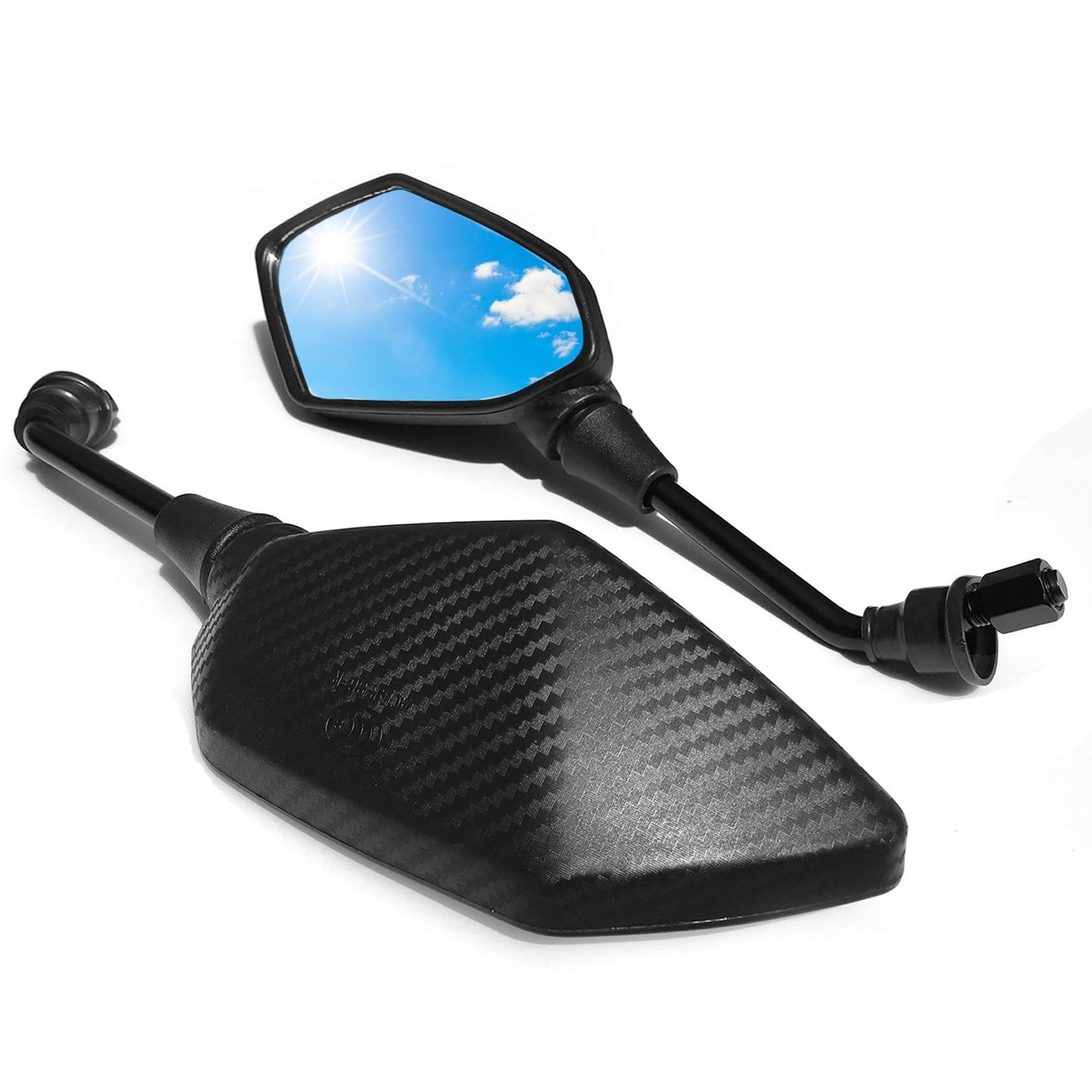 Archnote バイク ミラー 10mm カーボン 調 ブラック 左右 セット 汎用 サイドミラー オートバイ バックミラー カスタム 正ネジ 黒 M10