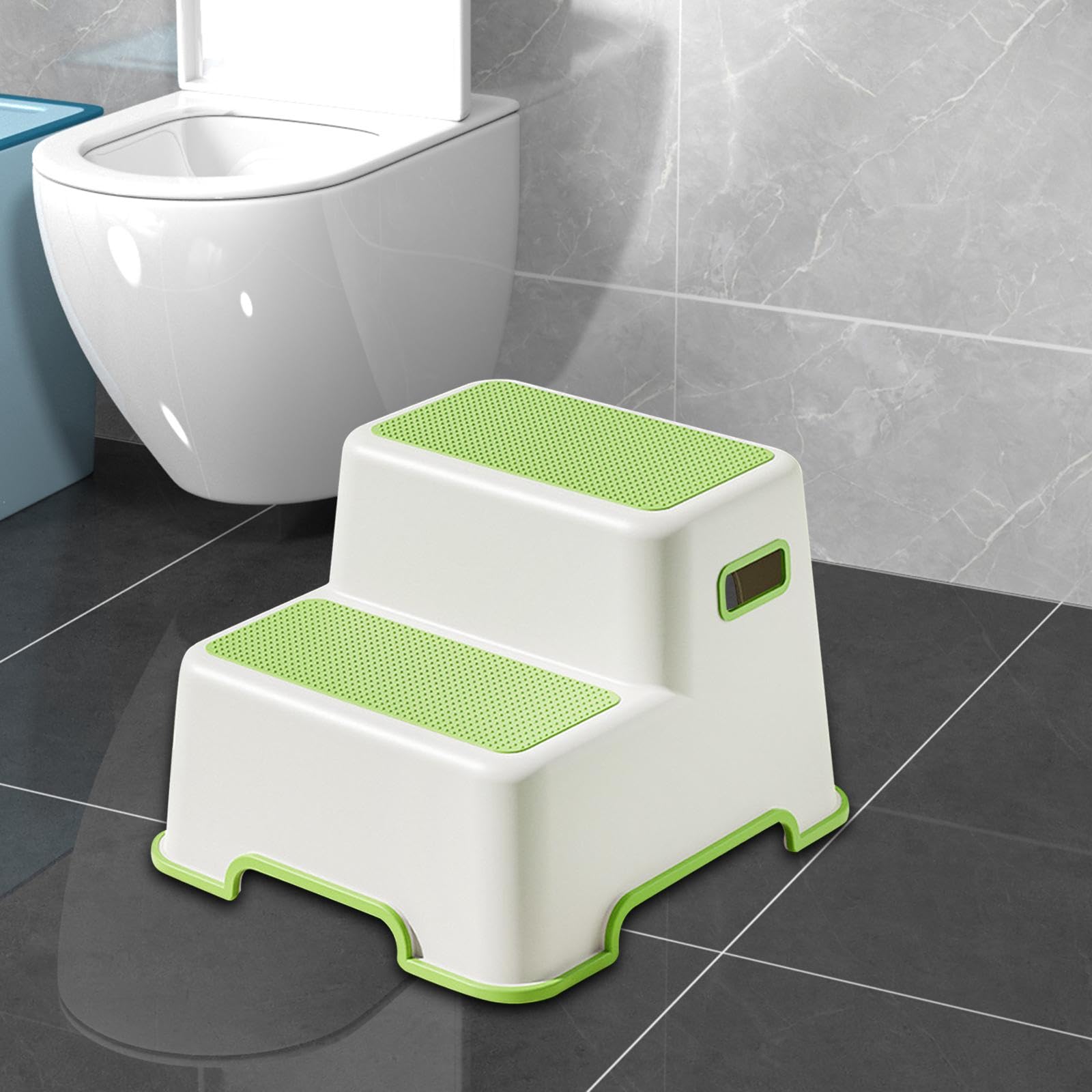 幼児用 2 ステップスツール バスルームスツール 軽量 多目的 台形構造 踏み台 滑り止め 1歳以上の子供用, 緑