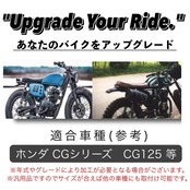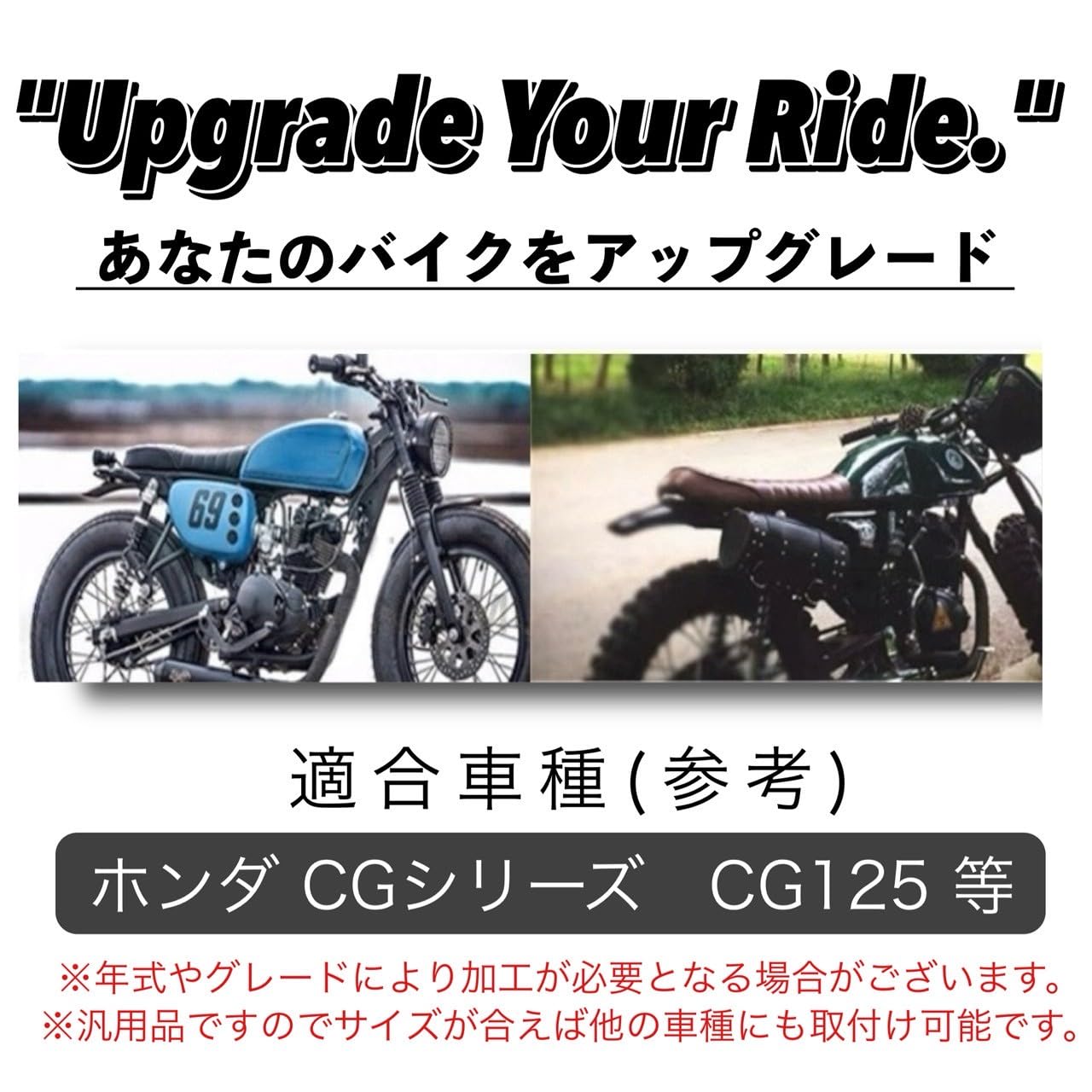 【適合車種(参考)】 ・ホンダ CG125 / CGシリーズ ・加工が必要ですが、ホンダ CB・CL、ヤマハ SR・XJ、スズキ GS、カワサキ KZ 等 ※車種のグレード・年式によっては、加工が必要な場合や、取り付け出来ない場合がございますのでご購入前に必ずご確認をお願い致します。