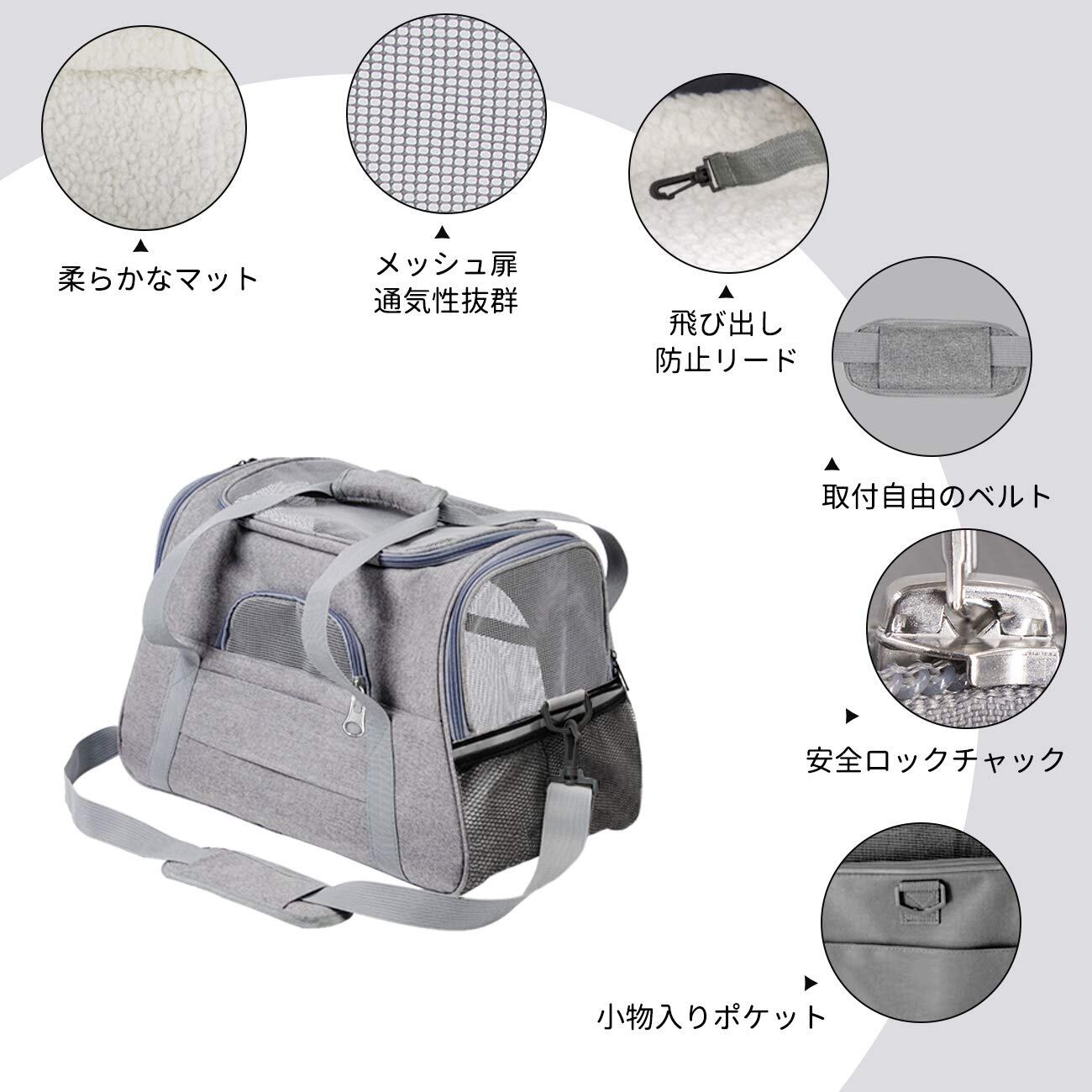 猫 キャリーバッグ マット付き ペットキャリーバッグ 通気性 犬キャリー 3way ショルダー コンパクト 手提げキャリーバッグ ライトグレー L