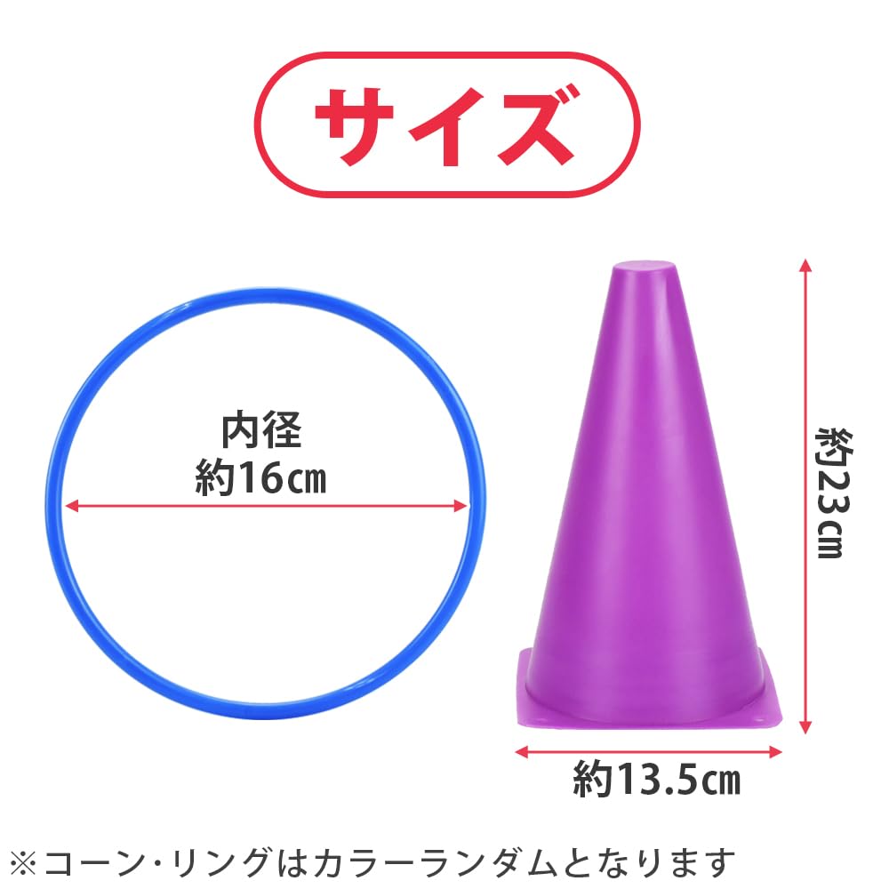✅【セット内容】リング×10点 コーン×6点 収納袋×1点 【サイズ(約)】リング:内径16cm コーン:13.5cm×23cm 【カラー】※リングとコーンのカラーはランダムです。