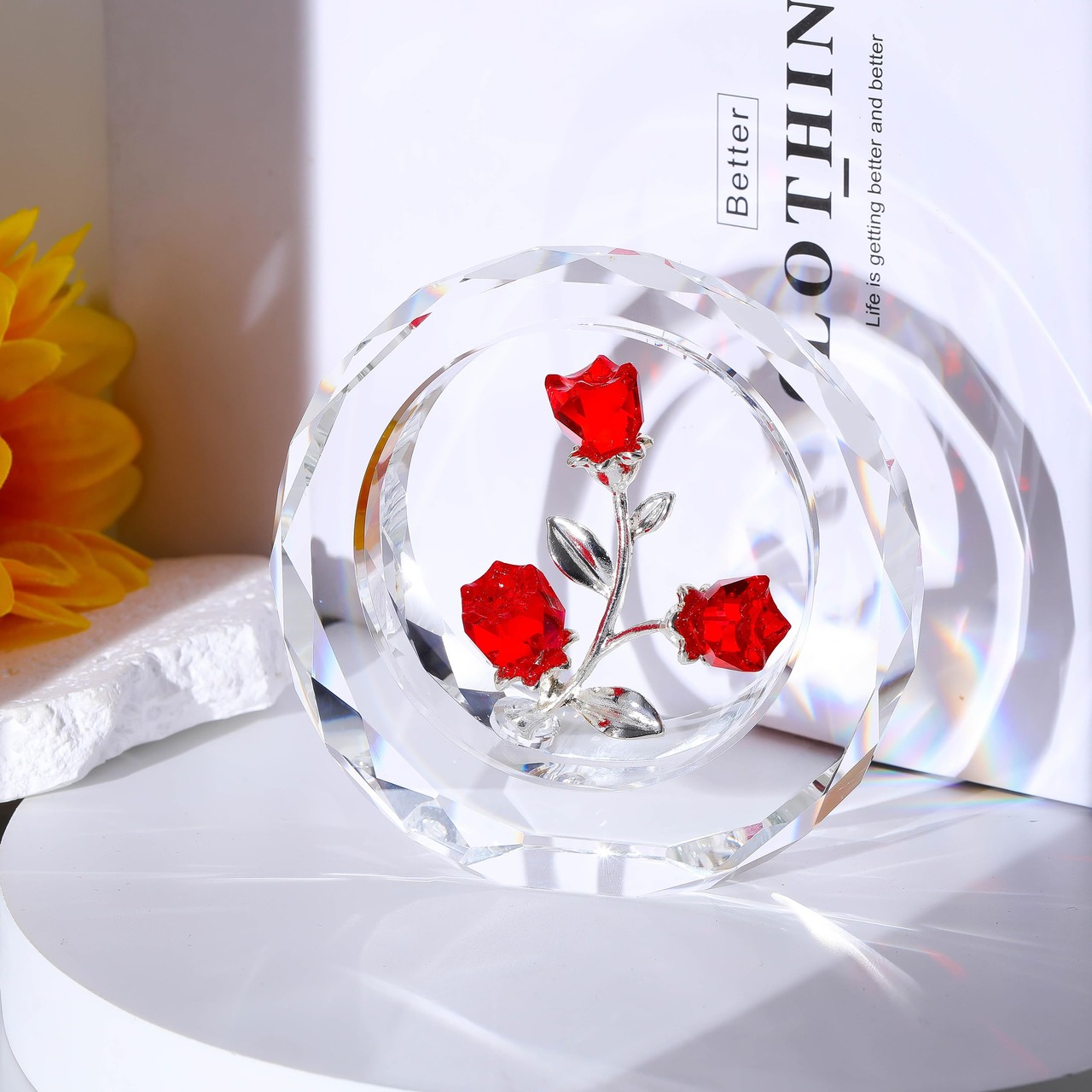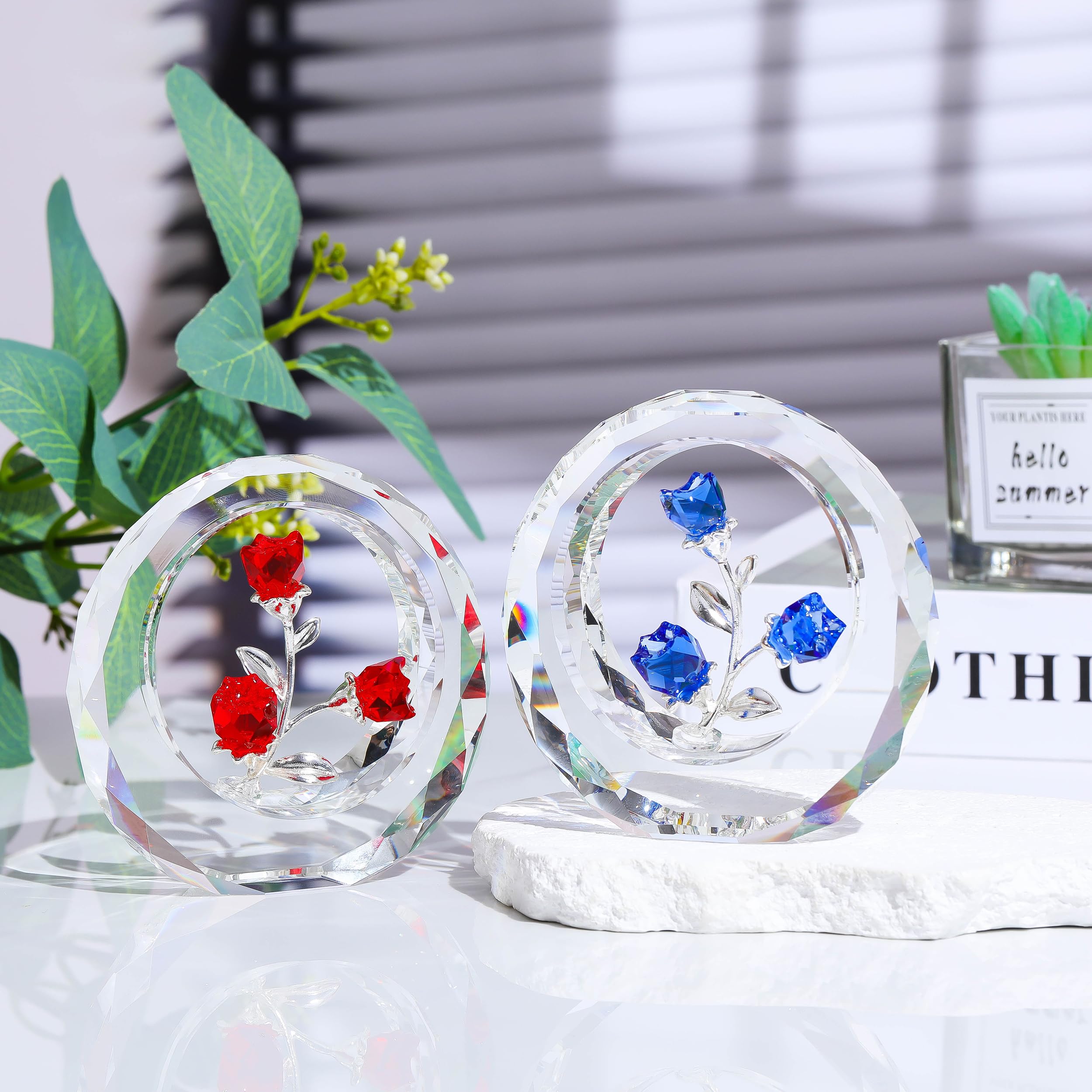 高品質素材: クリスタルガラスのバラの置物は、高品質のK9クリスタルと金属で作られており、非常にエレガントで美しく、枯れる花とは異なります。 各バラのクリスタルフィギュアに咲く4本のバラは手作りで、絶妙でゴージャスです。