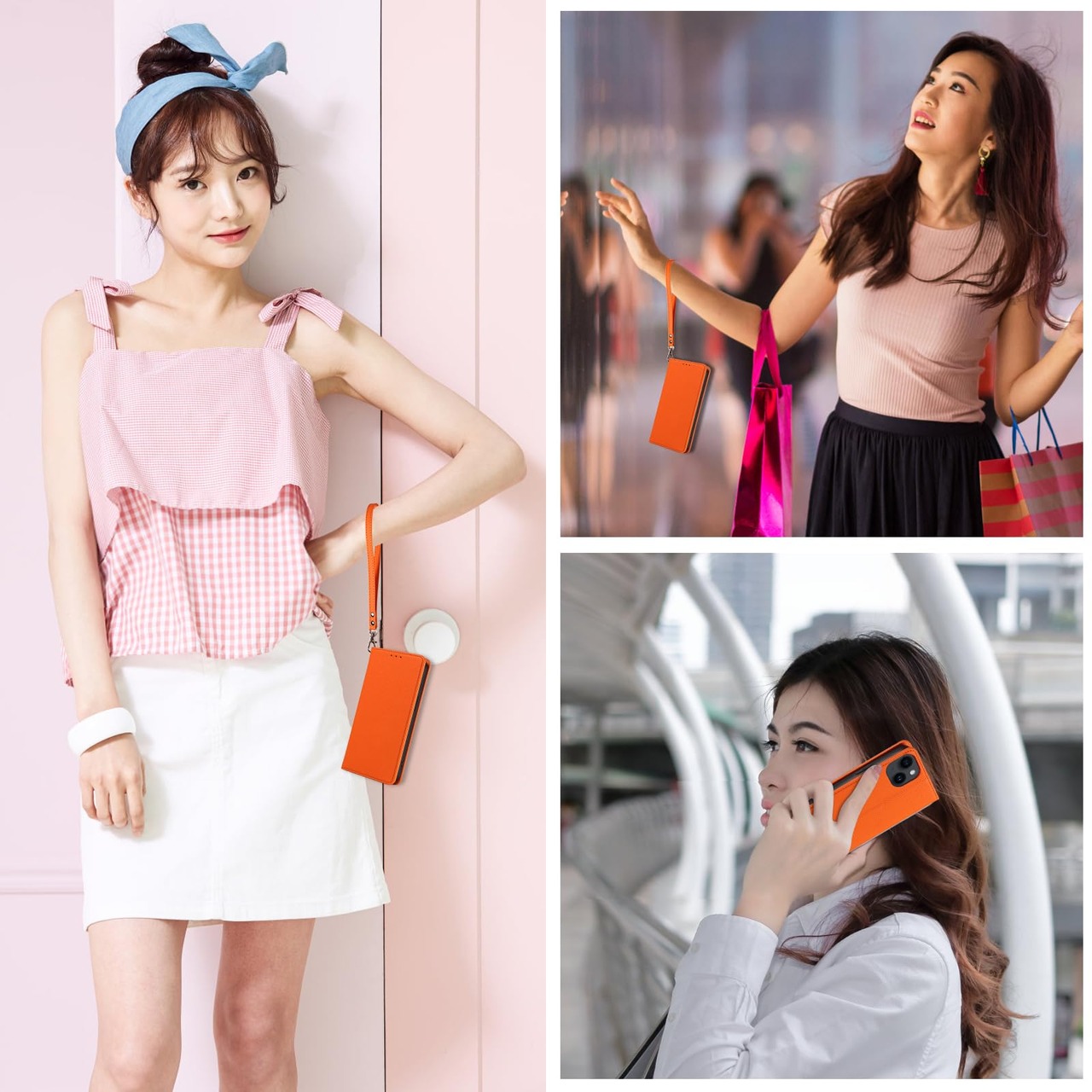 iPhone15 ケース アイフォン15 スマホケース 手帳型 携帯カバー レザー 耐衝撃 軽量 着脱しやすい 放熱性 マグネット式 カード収納 スタンド機能ケース15 対応 360度保護 PinLiSheng (オレンジ, iPhone 15)