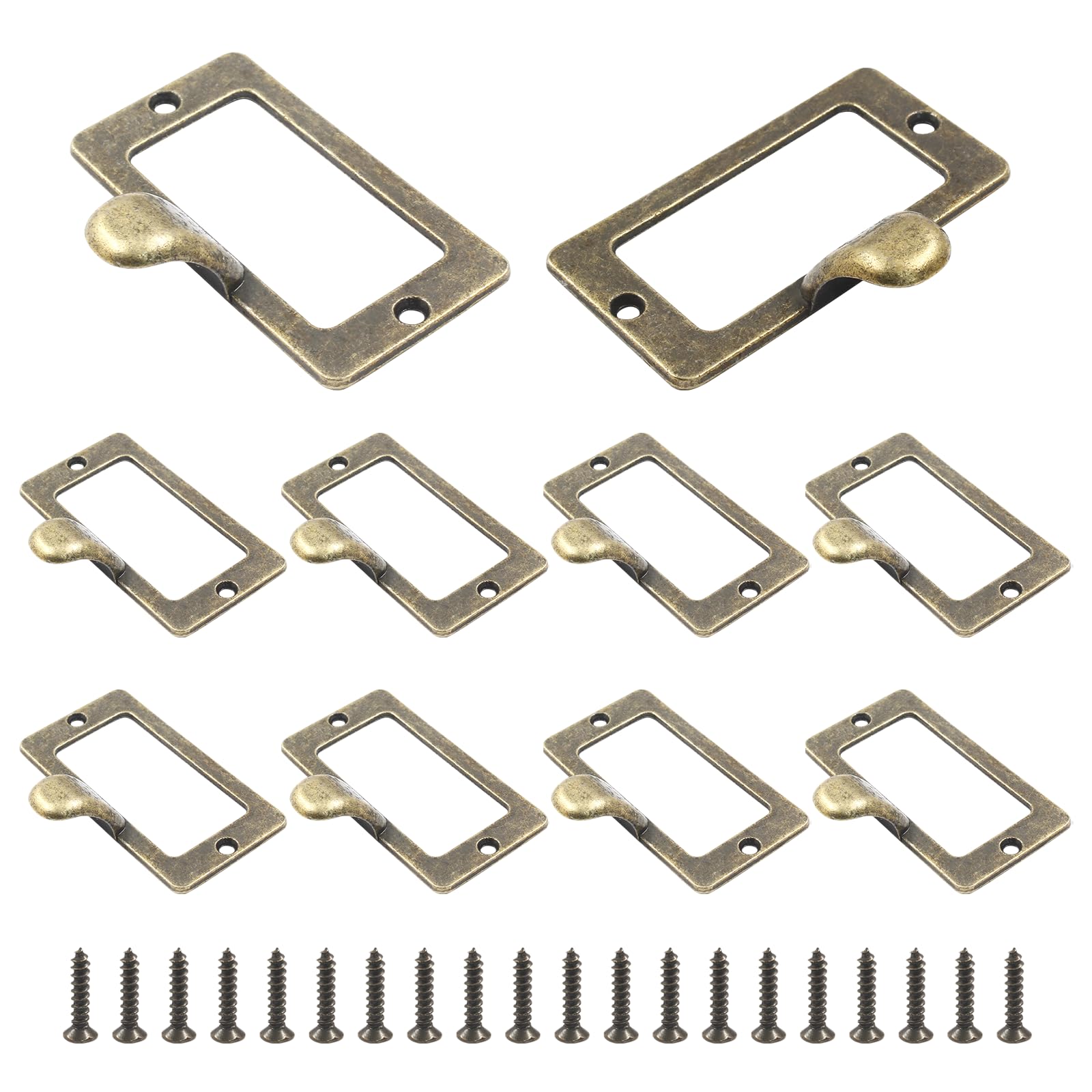 パッケージ内容: ヴィンテージブロンズカタログ引き出し用ラベルフレームホルダー10個、ねじ込み式取り付け用の10mmネジ2本付き。