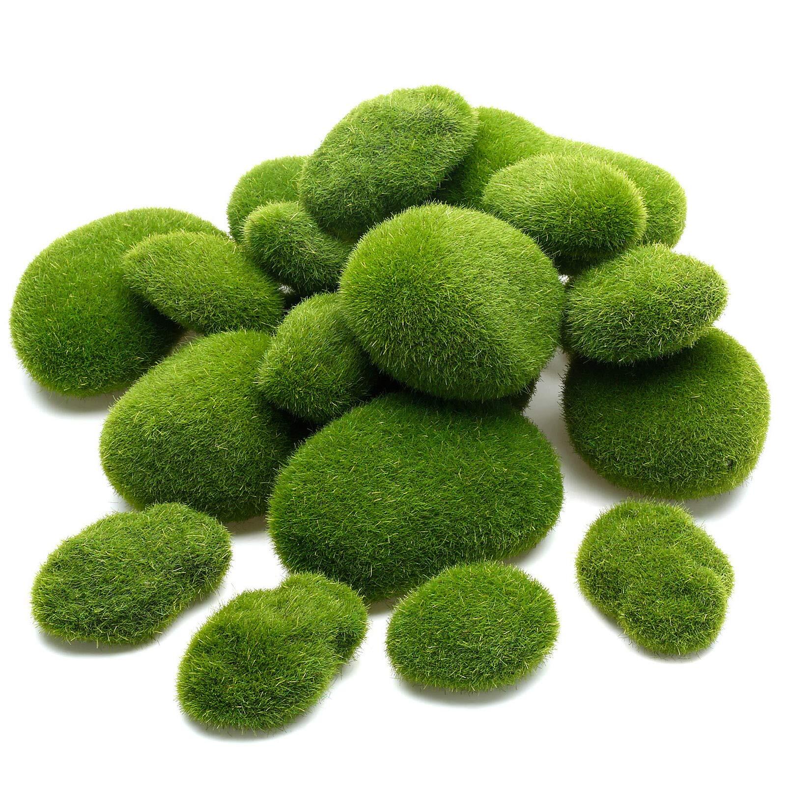 TUUWAI 人工モスロック 20個 装飾人工グリーンモスカバーストーン (5サイズ)