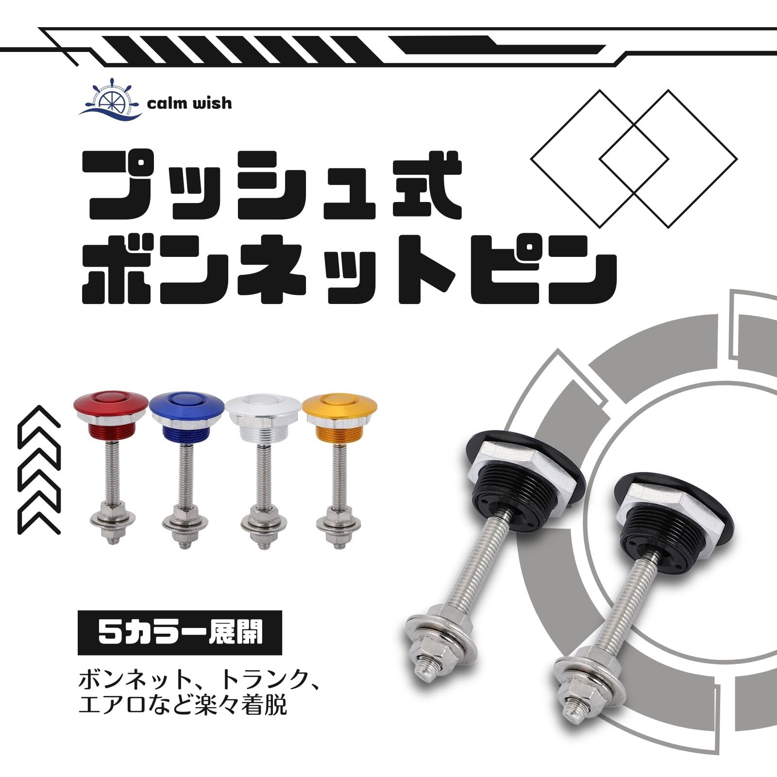 calm wish ボンネット ピン ボンピン クイック リリース アルミニウム 合金 プッシュ式 トランク エアロ カスタム シルバー 2個 汎用