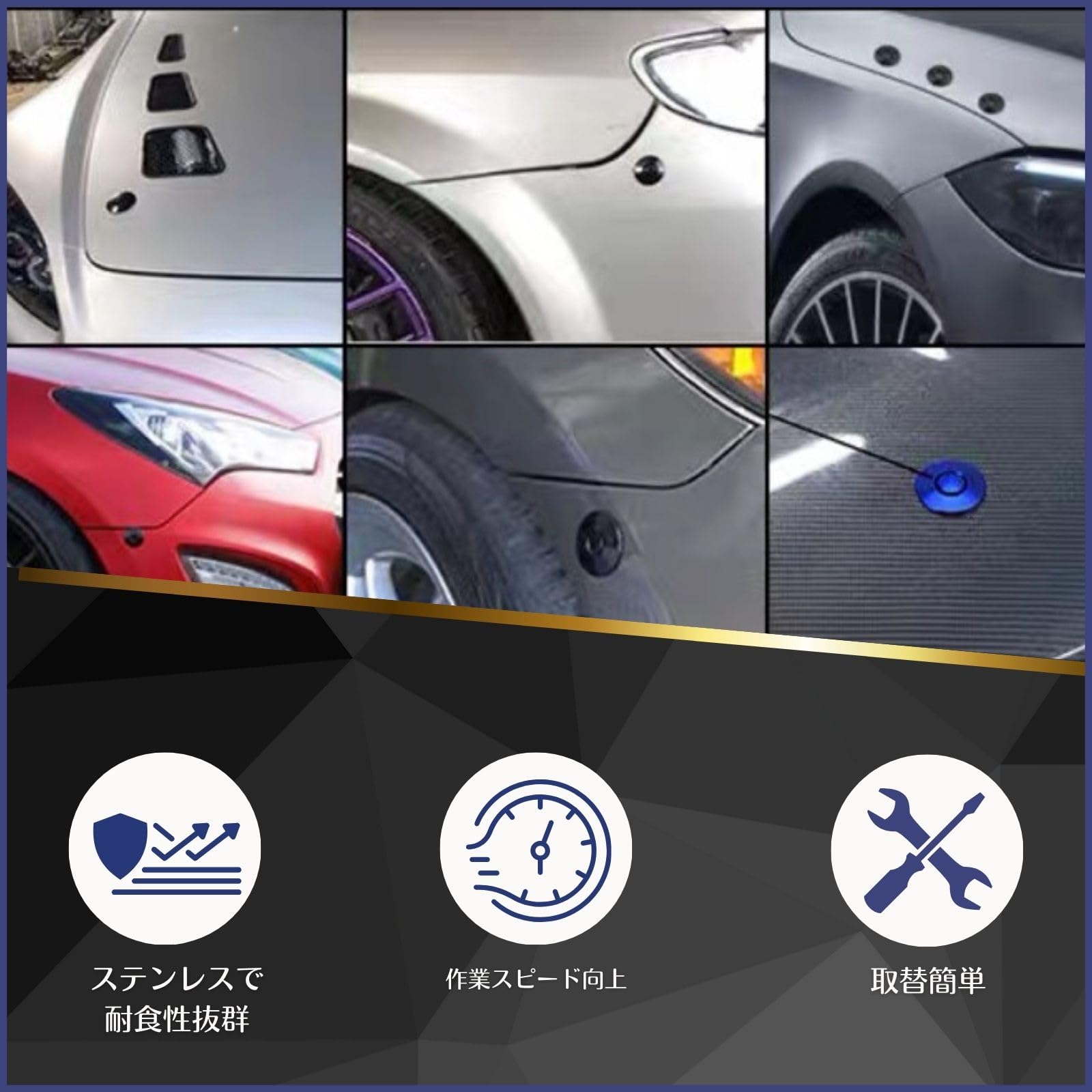 【クイックリリース機能】ワンタッチで簡単に脱着可能なプッシュボタンを採用。ボンネットの開け閉めがスムーズに行え、時間を節約できます。どんなボンネットにもフィットし、使い勝手抜群です。