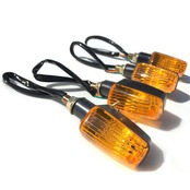 セット内容:シンプルなミニサイズで、スタイルに合わせてクリア レンズ ウインカー 4個 セットとアンバー レンズ ウィンカー 4個 セット2色からお選びいただけます。旧車のカスタム ドレスアップにもご利用いただける、バイク 汎用 ウインカーです。