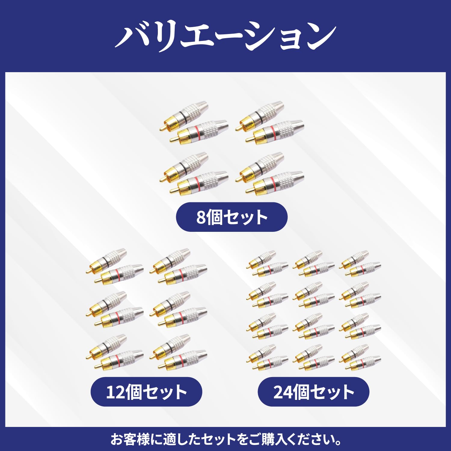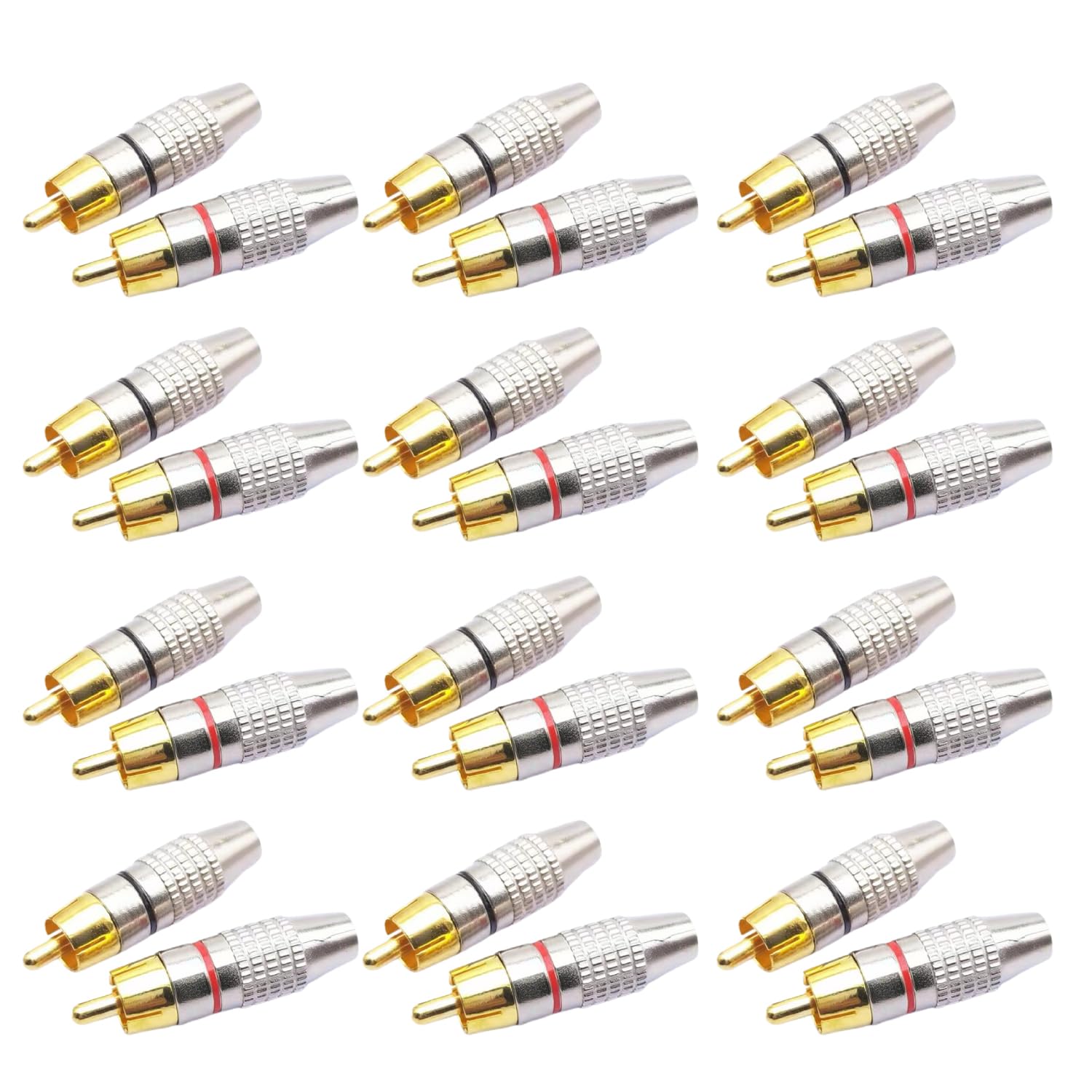 FRANSCHE RCAプラグ RCA プラグ 端子 ハンダレス 自作 オス メス 金メッキ ジャック ケーブル オーディオ(24個セット)