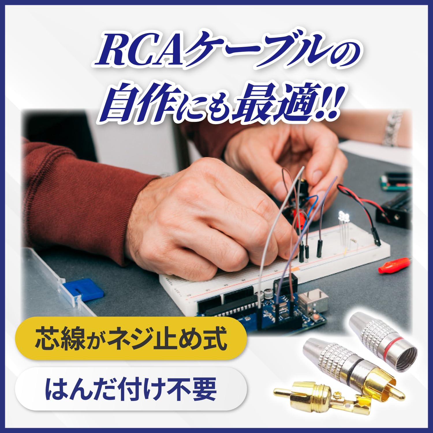 RCAケーブルの自作にも最適な金メッキタイプのRCAプラグ。