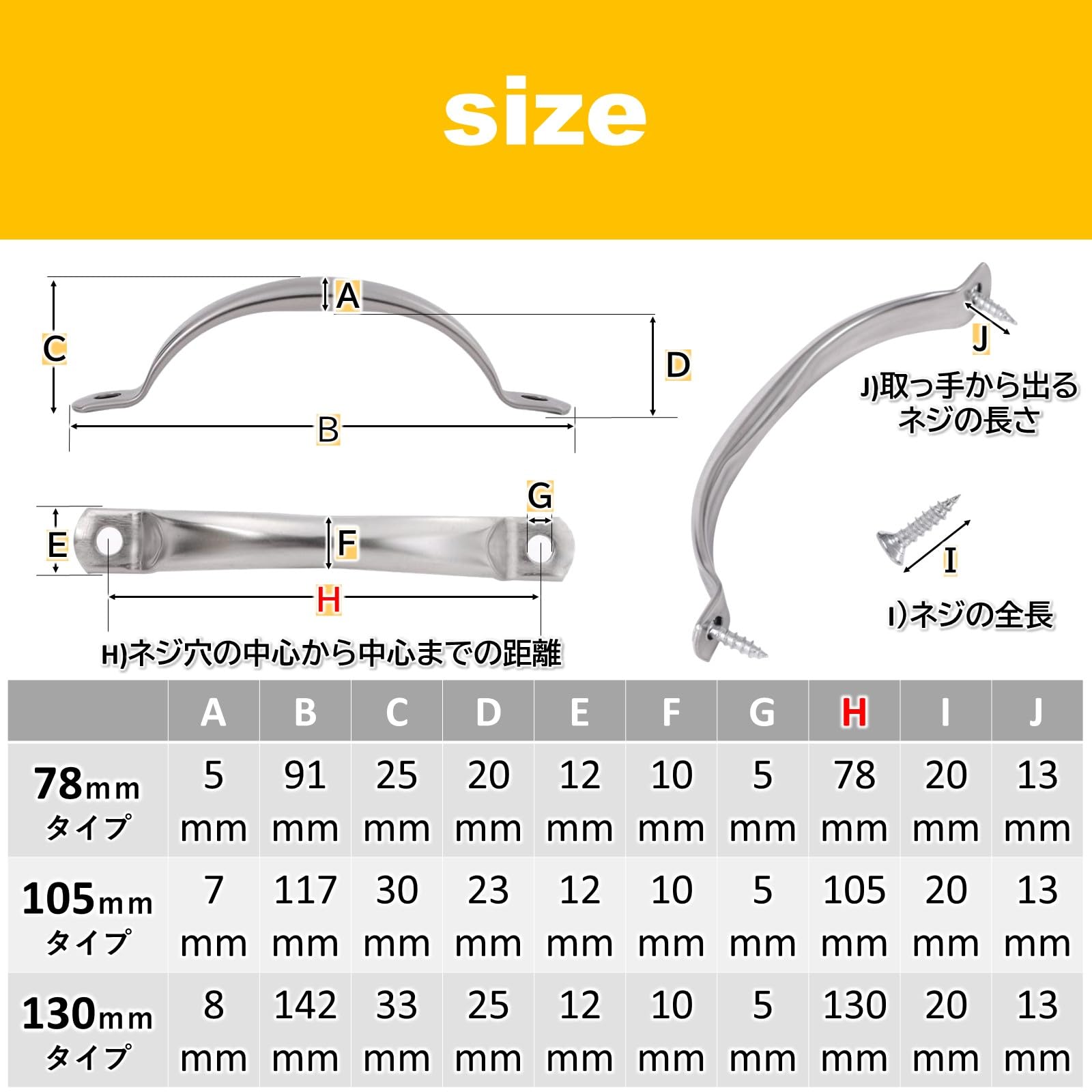 ネジ穴間の距離(約): 78mm/105mm/130mm