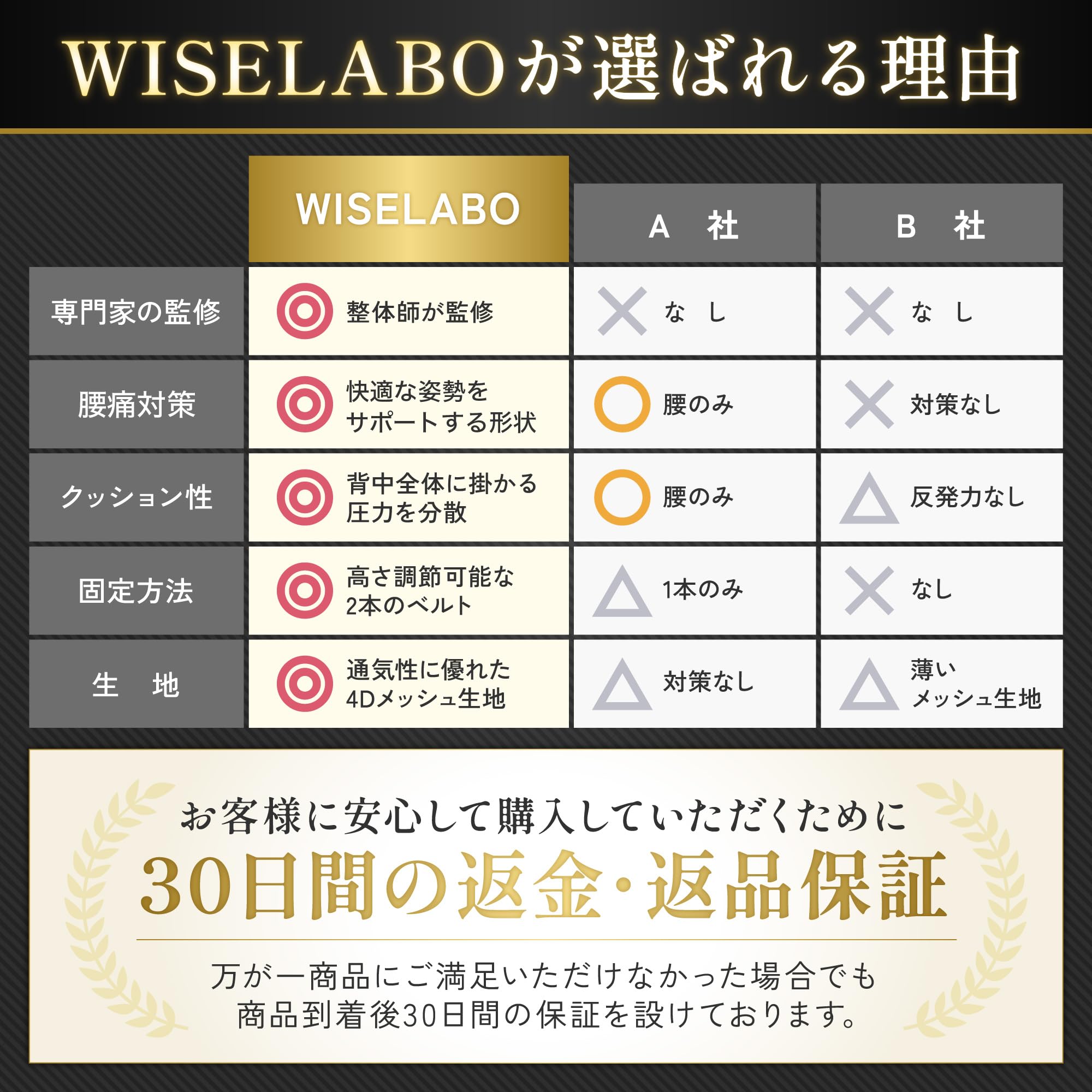 【安心の日本ブランド】WISELABOは日本のブランドです。当商品には30日間の保証サービスが付いております。ご不明点など、どうぞお気軽にお問い合わせください。