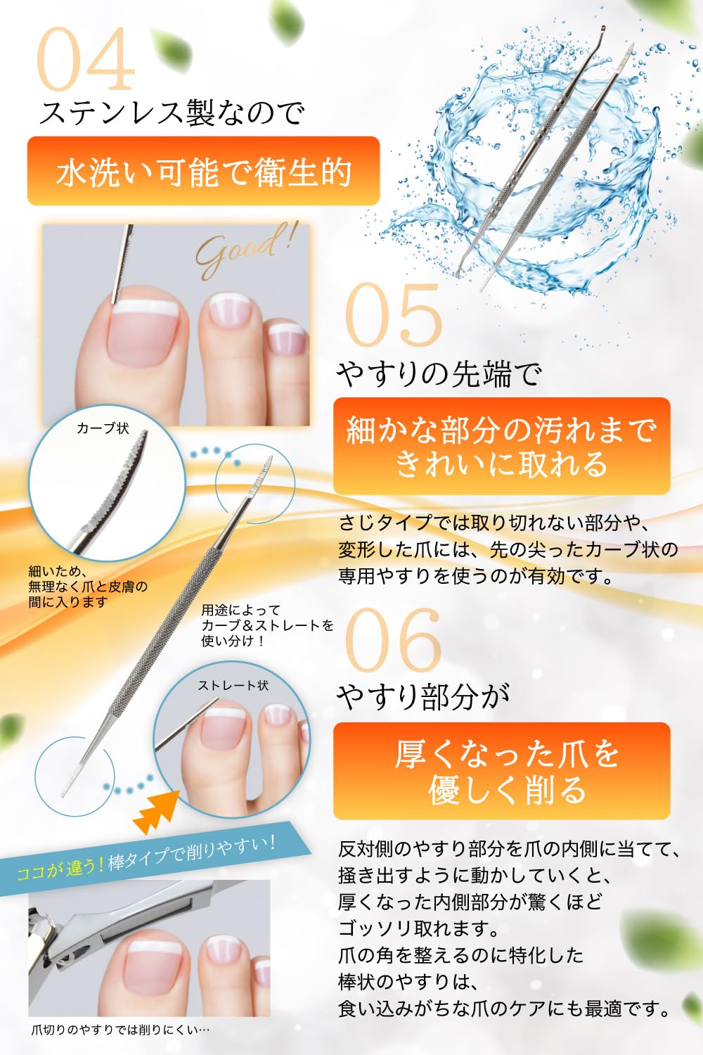 ✅【足の悩みのプロ、理学療法士が監修】CREATOMの爪垢取りは、多くのお客様の足のトラブル解消のお手伝いをされてきた理学療法士の中野亮先生が監修。たくさんの爪あかを取ることができ、また専用やすりとの二本使いが巻き爪対策にとても有効であるとお墨付きをいただいています。