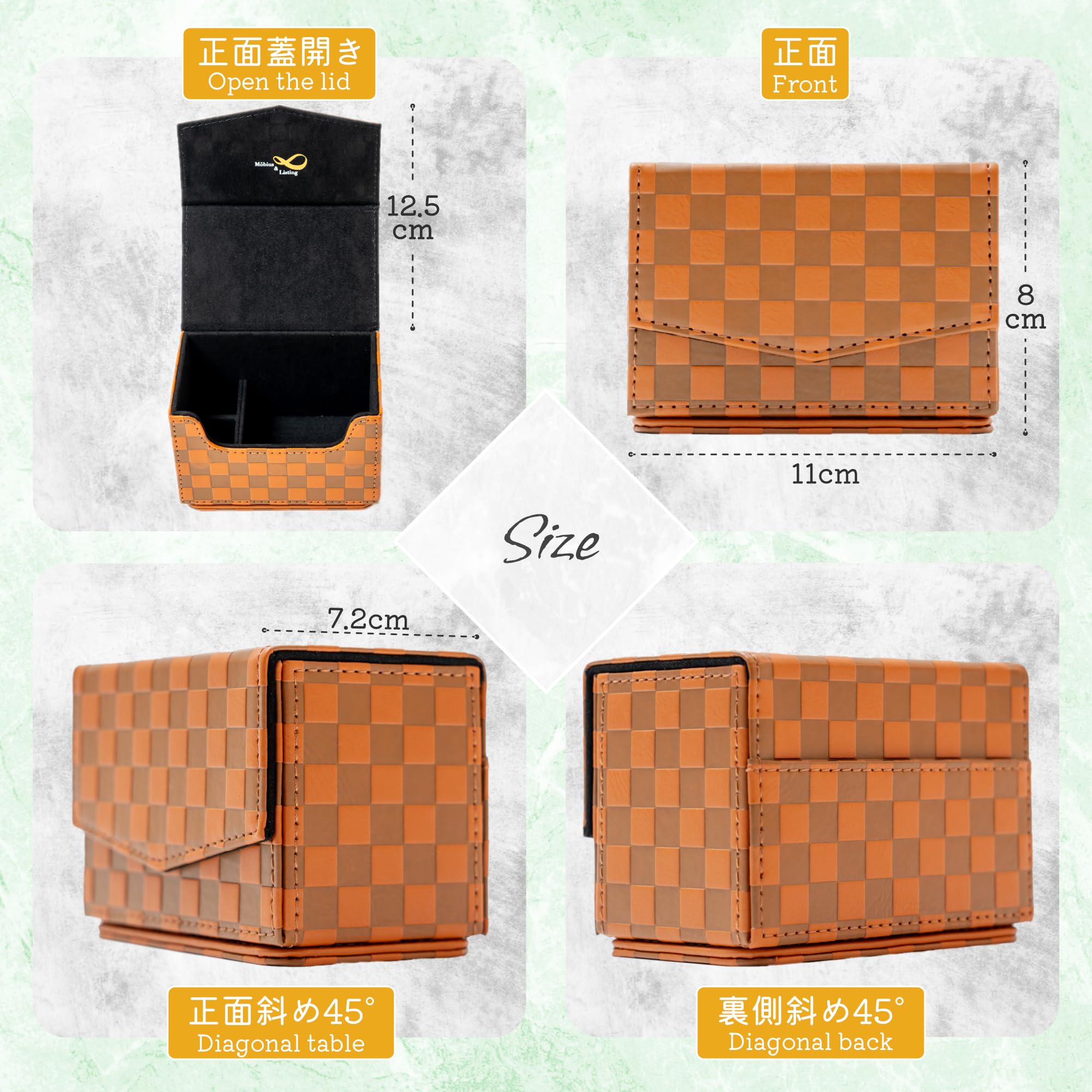 ✅サイズ[11㎝×7.2㎝×8㎝] ・商品重量[136ℊ] ・素材[PUレザー] ・模様[市松模様]