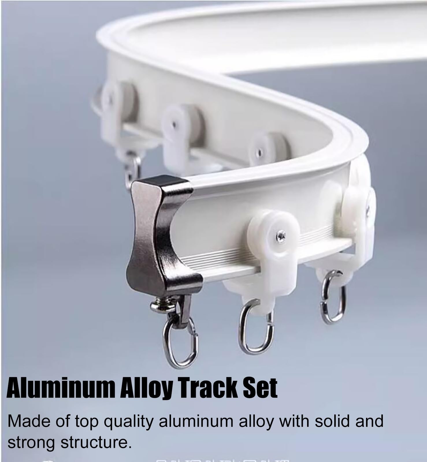 【天井または壁のカーテンレール】:当社のカーテンレールは商用グレードのアルミニウム合金でできており、頑丈で錆びず、摩耗が激しいです。 カーテンレールは40KG / 88LBを超える最大引張重量耐荷重を保持できます。