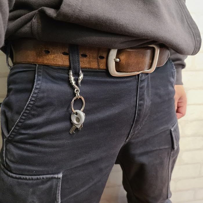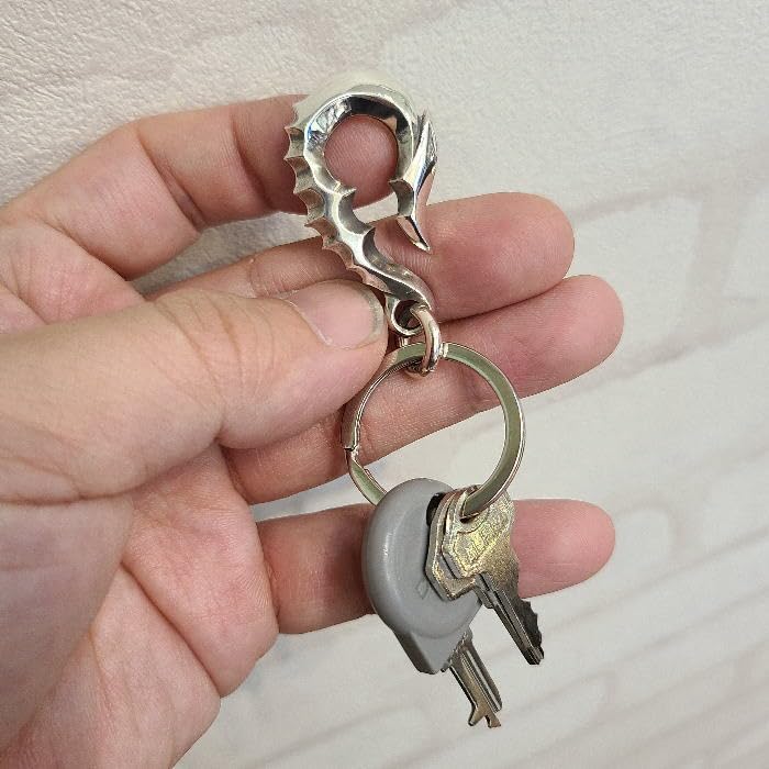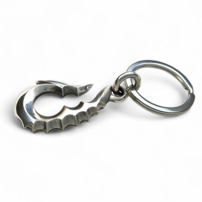 複数の鍵を1つにまとめるキーリングを備えたキーホルダー。 <BR> ベルトループにフック部分を引っ掛けて身に着けるキーチェーンです。 <BR> 沢山の鍵を持つ方はこのキーフックがあればスマートに、かつオシャレに鍵を持ち歩く事が出来る便利なシルバーアクセサリーです。 <BR> <BR> ワイルドな釣り針モチーフをシルバー925の輝きが際立つようシンプルなデザインで仕上げました。 <BR> <BR> 釣り針のモチーフは・・・ <BR> 魚を釣るときに使用する釣り針はハワイのポピュラーなモチーフ、「幸福を釣り上げる」「繁栄を招く」ラッキーアイテムとされておりサーファーにも人気なモチーフです。 <BR> <BR> キーチェーンのほかにもウォレットチェーンと組み合わせたりペンダントを組み合わせたりカスタムすることで無限大のアレンジが楽しめるパーツです。 <BR> <BR> 手のひらサイズの小ぶりなサイズ感が男性女性問わず人気のデザインです。 <BR> <BR> <BR> ◆寸法 <BR> フック全長(マルカン、キーリングは含まない) 41mm <BR> フック幅 23mm <BR> フック最大厚み 6mm <BR> <BR> 素材 silver925 <BR> <BR> <BR> ◆キーリングサイズ <BR> 線径3mm <BR> silver925 <BR> <BR> ◆注意◆ <BR> キーリング変更オプションで選択いただけるシルバー925のキーリング は銀製品のためとても柔軟性の高い金属となります。 <BR> ステンレスや鉄のキーリングと違い、太い鍵などを通すとキーリングに隙間ができてしまい重なっている部分が開きっぱなしになってしまうことがあります。 <BR> 私共で破損実験を行った結果、5mmア以上の箇所を通すと隙間が広がることがわかりました。 <BR> なおこれらのトラブルが起きても品質は何ら問題ありませんので返品交換などは承ることができません。 <BR> 予め通したい箇所の幅を図りよくご検討の上ご購入ください。 <BR>