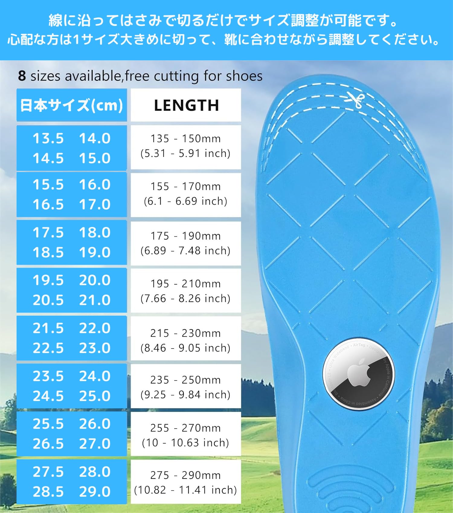 セキュリティ:公共の場で靴を履くことが多い場合、靴が盗まれたり、誤って取られたりすることが心配になるかもしれません。 このAirTag(エアタグ)ケース付きインソールは、靴をよりよく保護し、紛失した場合にすぐに発見するのに役立ちます。