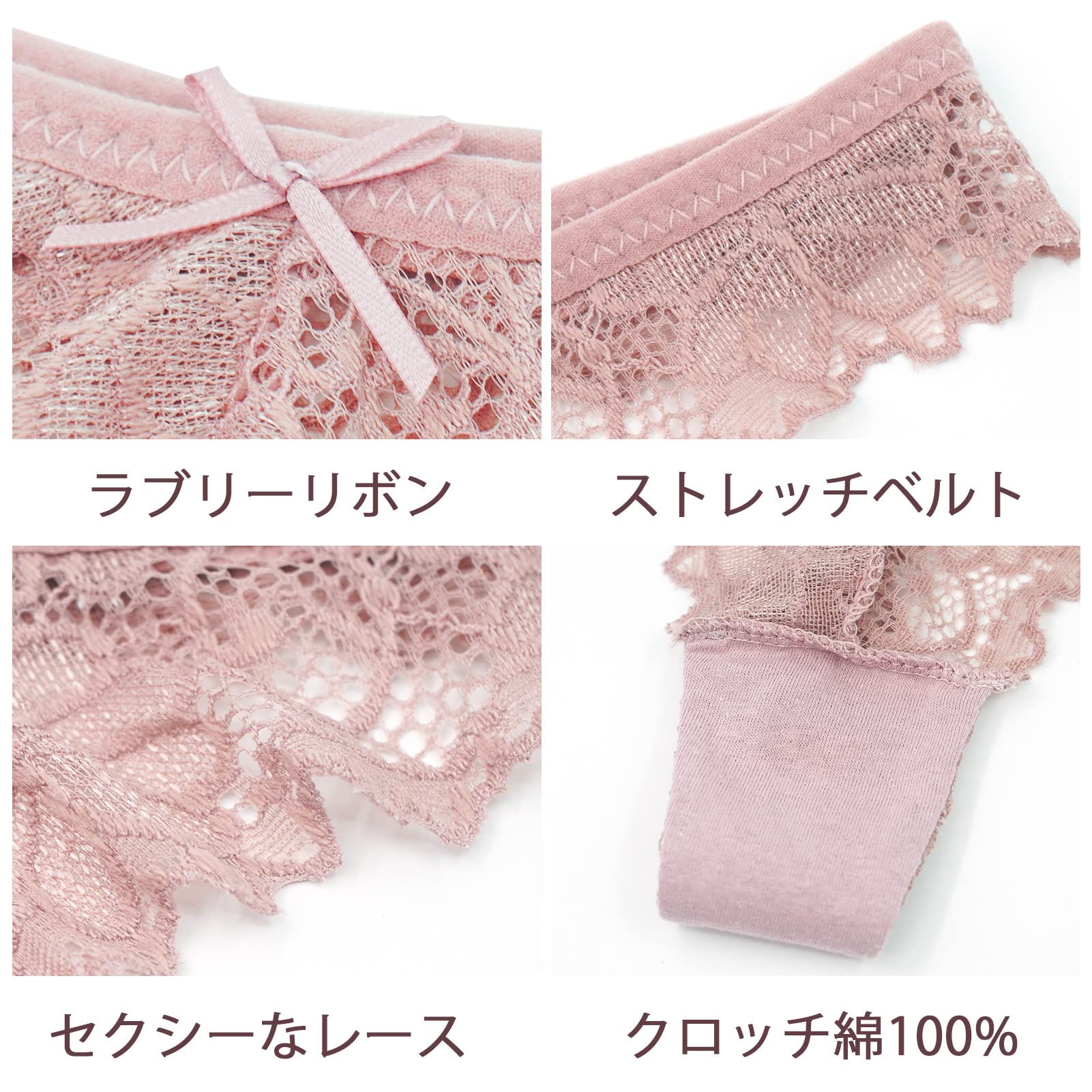 BONUMD(ララちゃん) レディース ショーツ 美尻 シームレス tバック パンツ セクシー パンティ 締め付けない 快適 通気 女性 下着 レース 透け感 5枚セット #E L