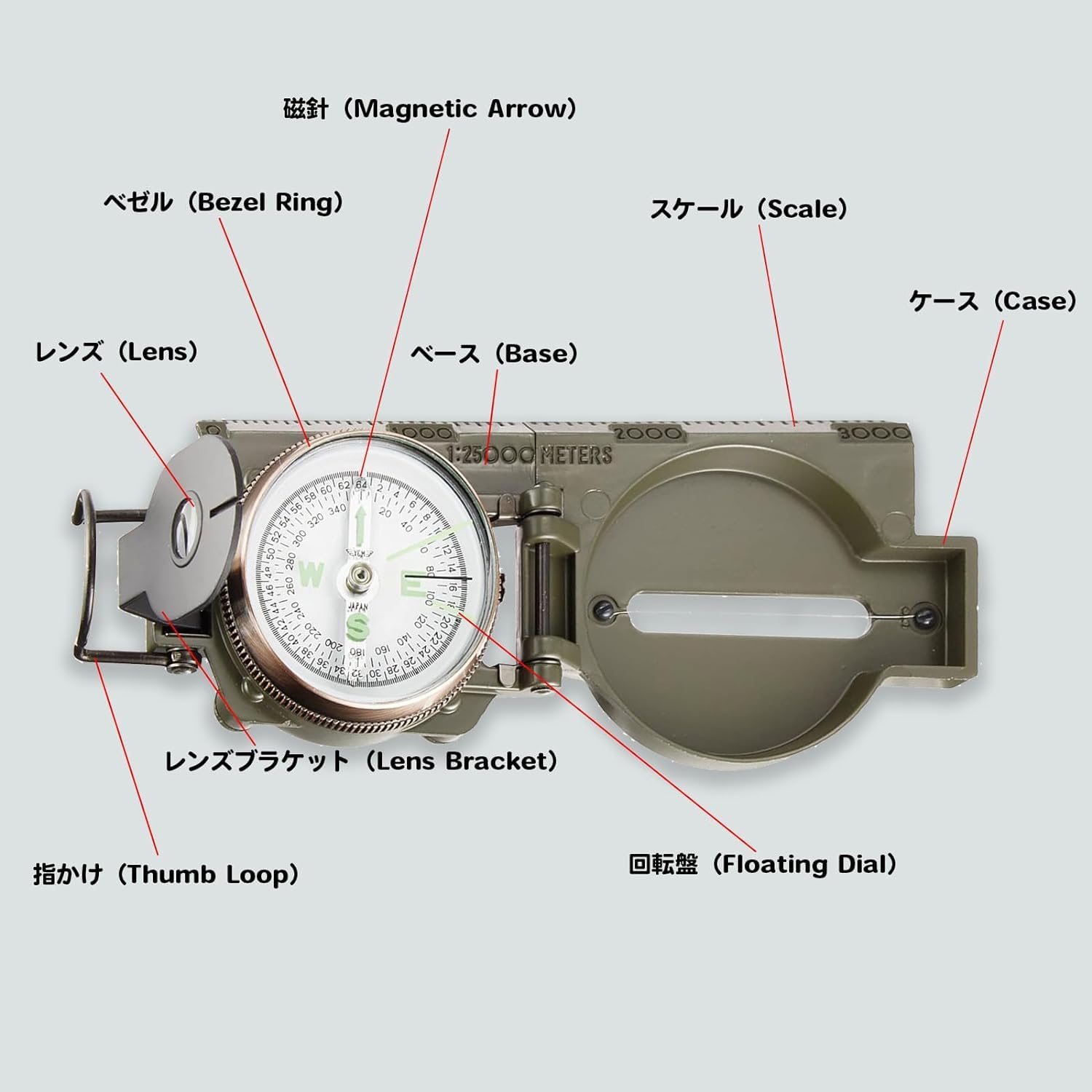 材質:《コンパス:アルミダイキャスト》《専用ケース:帆布》