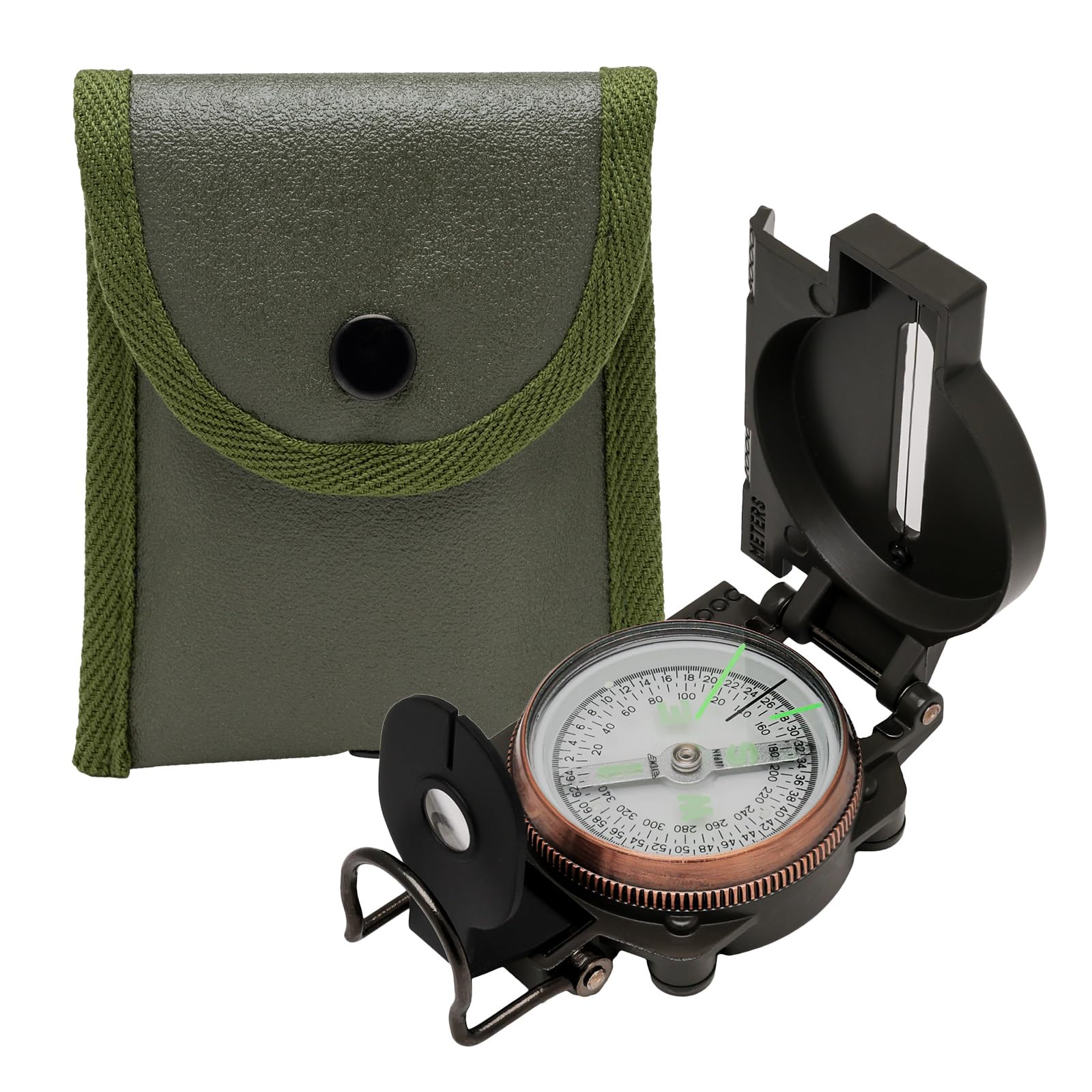 MIZAR-TEC(ミザールテック) コンパス 高精度軍用ミルスペック レンザティックコンパス 専用帆布ケース付き オイル式 日本製 カーキグリーン G-51SET