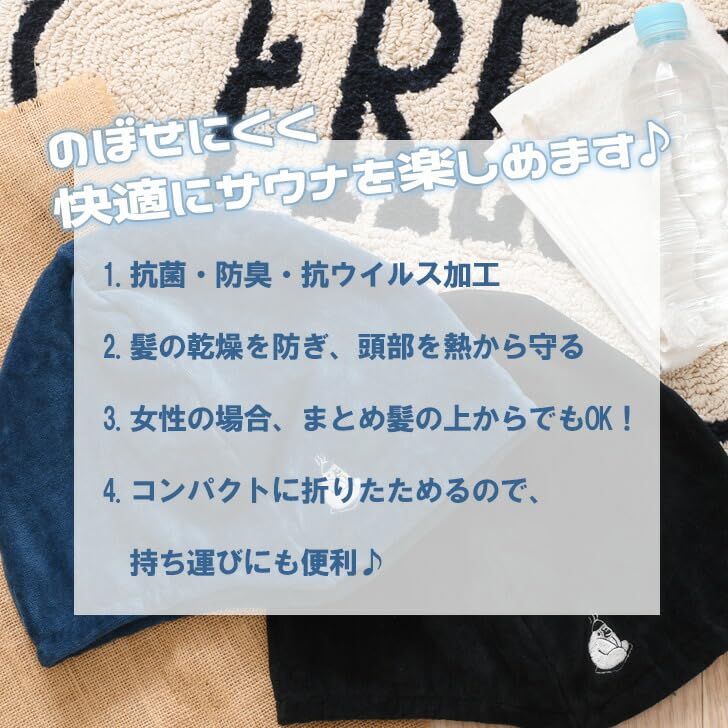●ゴリラのまもるさん刺繍がワンポイントになった今治瞑想サウナハット <br>男性でも口元まで被れる大きめサイズ◎ <br>深い方を前にして瞑想スイッチON! <br>コットン100%のふんわり柔らかな今治産タオルを使用。 <br>抗菌・防臭・抗ウイルス加工。 <br>女性の場合、まとめ髪の上からでもOKなゆったりサイズ! <br>髪の乾燥を防ぎ、頭部を熱から守るので、 <br>のぼせにくく快適にサウナをお楽しみいただけます♪ <br>コンパクトに折りたためるので、持ち運びにも便利♪ <br> <br>ギフト プレゼント 贈り物 誕生日 お祝い 敬老の日 サ活 サウナグッズ サウナ用品 サウナー タオル生地 癒しグッズ 日用品 実用的 雑貨 小物 風呂 温泉 銭湯 スパ ジム 岩盤浴 外気浴 水風呂 ロウリュ ロウリュウ レジャーハット キャンプ フェス ライブ コンサート スポーツ観戦 お出かけ デイリー 熱中症対策 紫外線対策 日除け 日よけ テントサウナ シンプル 無地 ベーシック カジュアル 可愛い 大人 ペア お揃い 夫婦 友達 カップル男性 女性 ユニセックス 男女兼用 フリーサイズ いまばり ブラック 黒 <br> <br>■サイズ(cm)/高さ/横幅/周囲/重さ(g) <br>-/31/33/71.5/67/ <br> <br>■生産:日本製 <br>■注意事項1:最初は多少毛羽落ちすることがございます。また、色物は他の衣類に色落ちすることがありますので、他のものとは一緒に洗わないでください。塩素系漂白剤、蛍光増白剤は使用しないでください。 <br>■注意事項2:綿100%のため、洗濯すると少しずつ縮みが発生します。 <br>■注意事項3:手作業での製造のためサイズに多少のばらつきがございます。 <br>■注意事項4:その他詳細は、付属のお取り扱いについてのお願いをご覧ください。 <br>■素材:綿100% <br>■カラー:ブラック(33)<br>ネイビー(34)<br>ベージュ(35)<br>サウナオレンジ(19)<br>サウナグリーン(20)<br>サウナグレー(21)