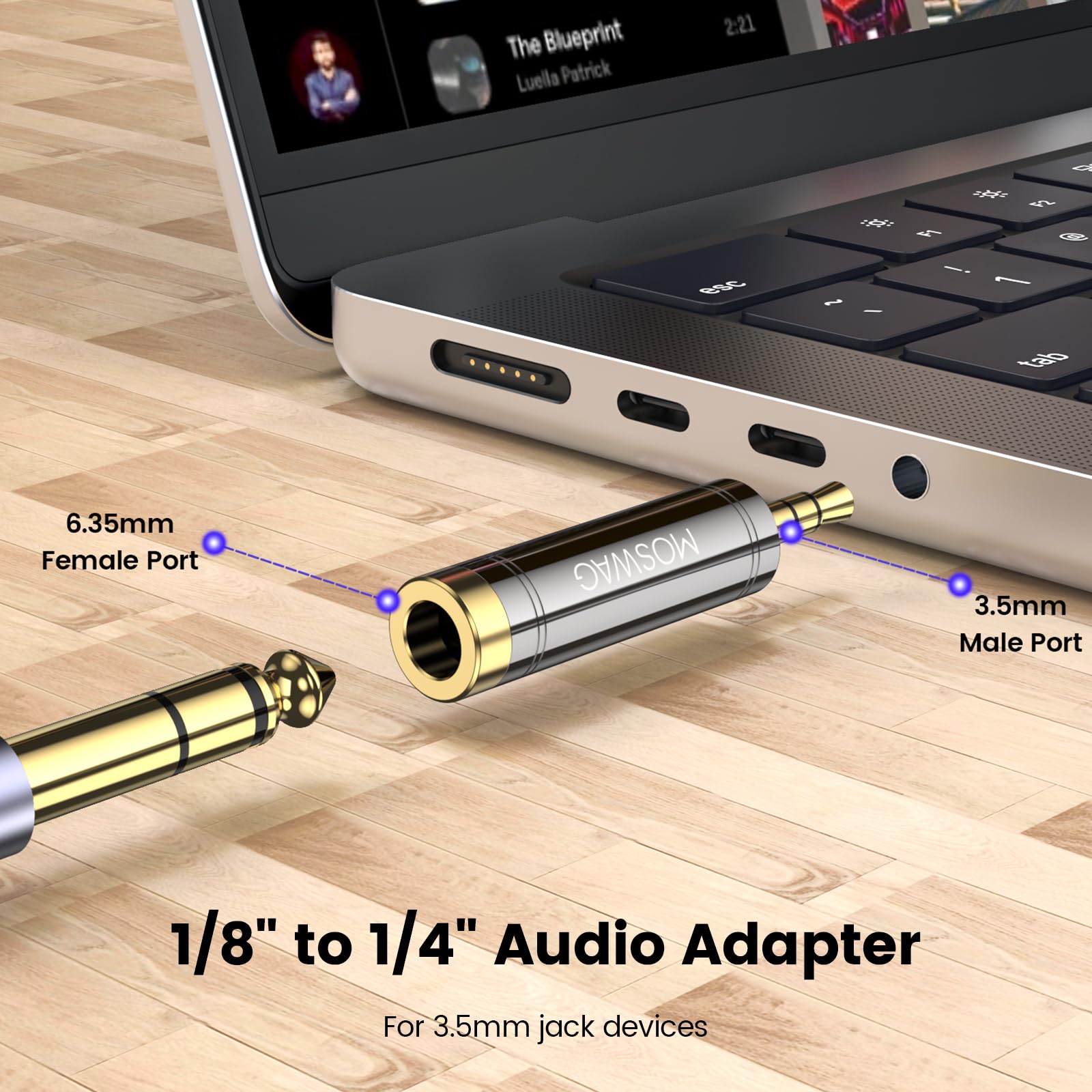 MOSWAG 6.35mm 3.5mm 変換(3極) 6.35 3.5 ステレオミニプラグ 6.35mm to 3.5mm(メス to オス) ステレオ標準プラグ交換アダプタ、アンプ、調音台、ホームシアター機器、エレキギターに適している