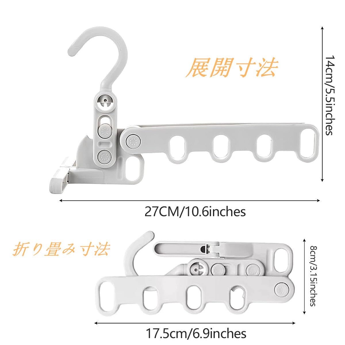 * 材料:PP<br><br> * カラー:ライトグレー<br><br> * 数:折りたたみ式ハンガー2点<br><br> * 展開サイズ:約27 x 14 x 2 cm/10.6 x 5.5 x 0.79インチ<br><br> * 折りたたみ寸法:約17.5 x 8 x 2 cm/6.9 x 3.15 x 0.79インチ<br><br> * 超軽量の洗濯乾燥ラックは、使わないときは折りたたむことができ、スペースを占有しません<br><br> * 5つの穴の間隔が適切で、空気の自由な流れを実現する<br><br> * 360度回転フック設計を採用し、伸縮自在<br><br> * マルチポジション調整、サスペンション位置に応じて適切な角度を調整することができる<br><br> * 補助支持設計によりサスペンションが安定化<br><br> * クローゼットの整理器として、少なくとも80%のスペースを節約し、クローゼットを清潔に保つことができます<br><br> * 室内、リビング、寝室、ベランダ、窓台、オフィス、バスルームなどに適しています。