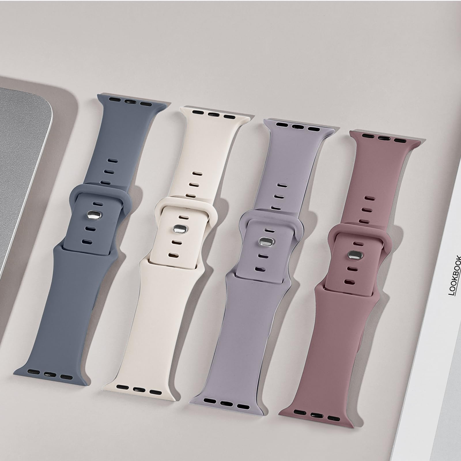 【4枚入り】Knossen コンパチブル Apple Watch バンド 38mm 40mm 41mm 42mm 44mm 45mm 46mm 49mmアップルウォッチ バンド シリコン製 スポーツバンド iWatch Series 10 9 8 7 6 5 4 3 2 1 SE に対応 シリコン製 スポーツバンド 交換ベルト 柔らかい 通気 男性 レディース