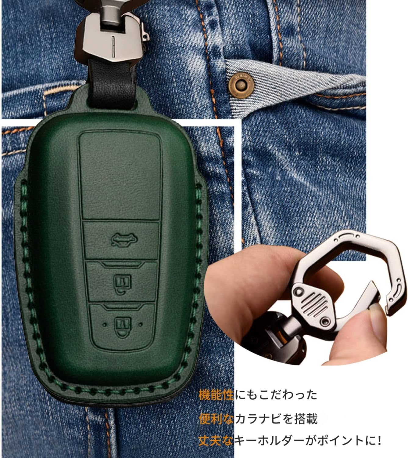 [ANDOULAI] ハイグレードトヨタ純正本革製キーケースセット 220系 C-HR プリウス50系 RAV4 50系 Prado 150 後期 210系カローラスポーツ・クラウンキーケース対応 (3ボタン/グリーン)