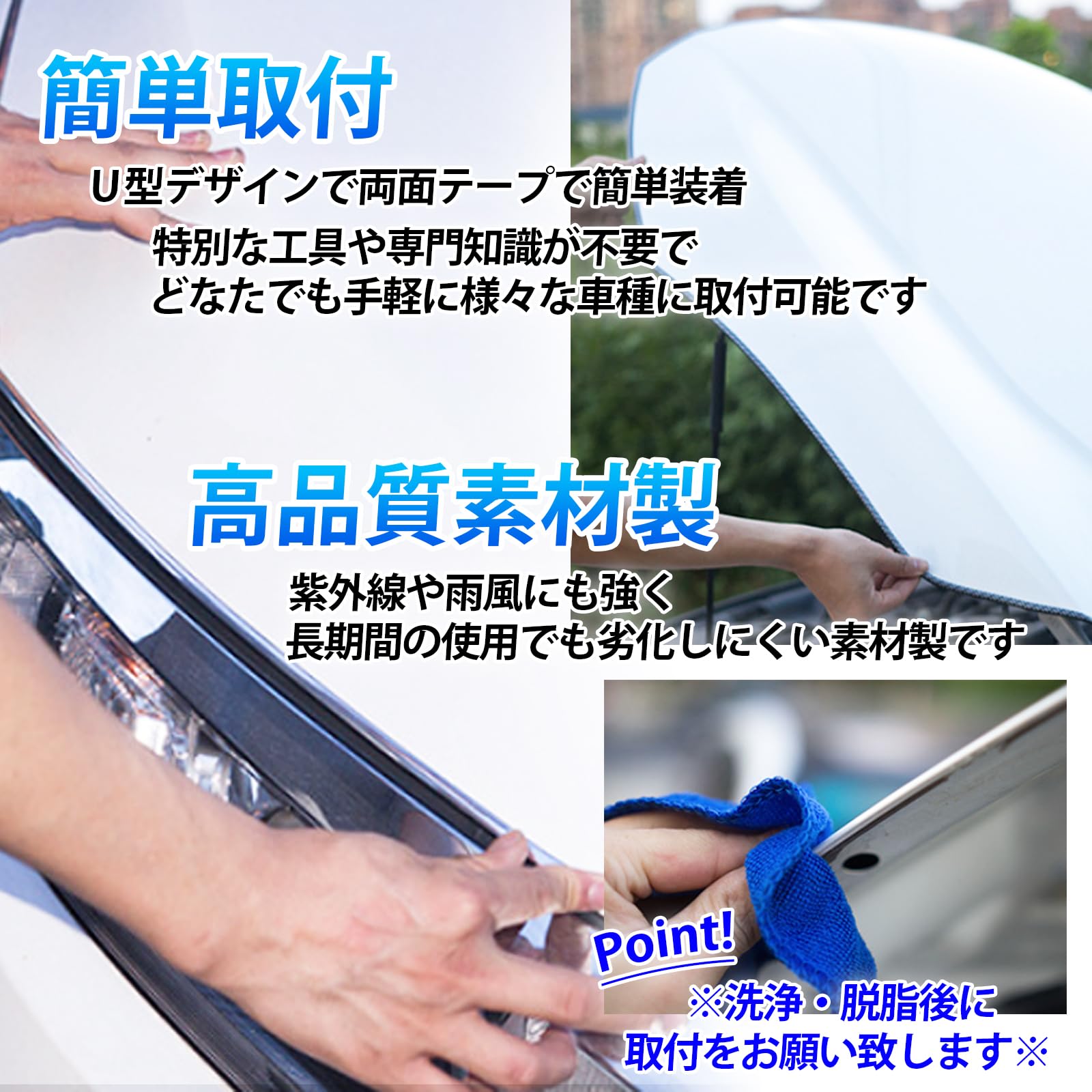 【簡単装着】U型デザインで、両面テープで簡単装着が可能です(洗浄、脱脂後に取付をお願い致します)どの車種にも簡単に取り付け可能です。特別な工具や専門知識が不要で、誰でも手軽に取り付けられるため、時間と手間を大幅に節約できます。
