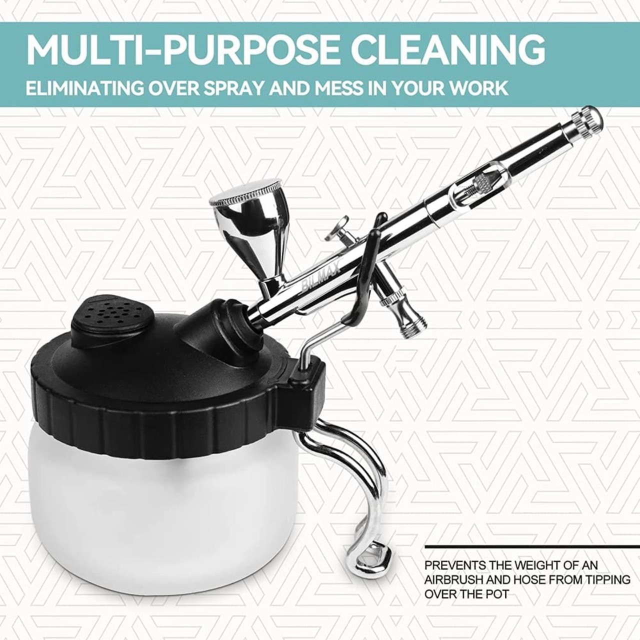 Mkphargin エアブラシ 13点 エアブラシクリーニングキット -エアブラシクリーンポットグラスクリーニングジャー ホルダー付き ミニブラシヘッド