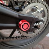 ●●●スイングアームスプールスライダーは、機能を備えた保護を提供し、適切なスプールフォークフィッティングを備えたパドックスタンドを使用してバイクの後部を持ち上げることができます。