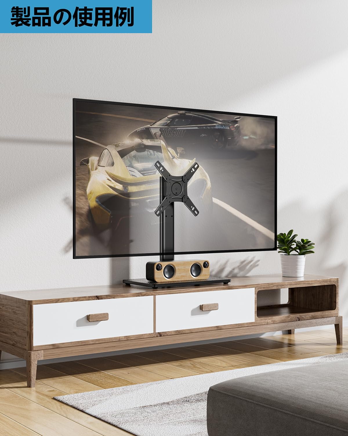 【ケーブル収納】 TVベーススタンドは15分以内に素早く簡単に取り付けられ、必要なハードウェアがすべて含まれています。ケーブル管理システムは乱雑なワイヤーを隠し、エンターテインメント機器を整理整頓します。