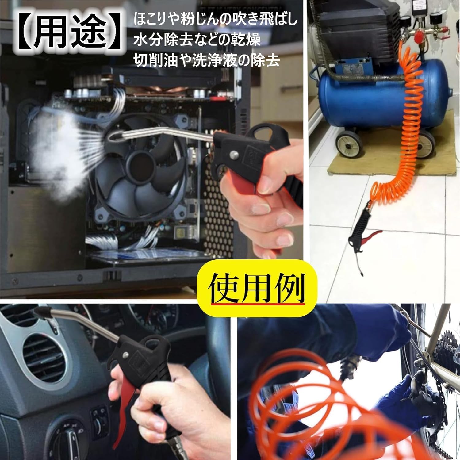 エアー工具用ホースとエアブローガンとエアー調整のセットは、洗車後の水飛ばし ナットの水飛ばし 車の埃飛ばし DIYでエアブロー 模型塗装時の埃を飛ばし ポリッシャーバフ掃除 掃除機のフィルター掃除 グリルやライト周りの溝塵飛ばし 車の隙間の汚れ飛ばしなど手が入りにくい細かい埃や塵などの飛ばしなど色々な用途にお使いいただけます。