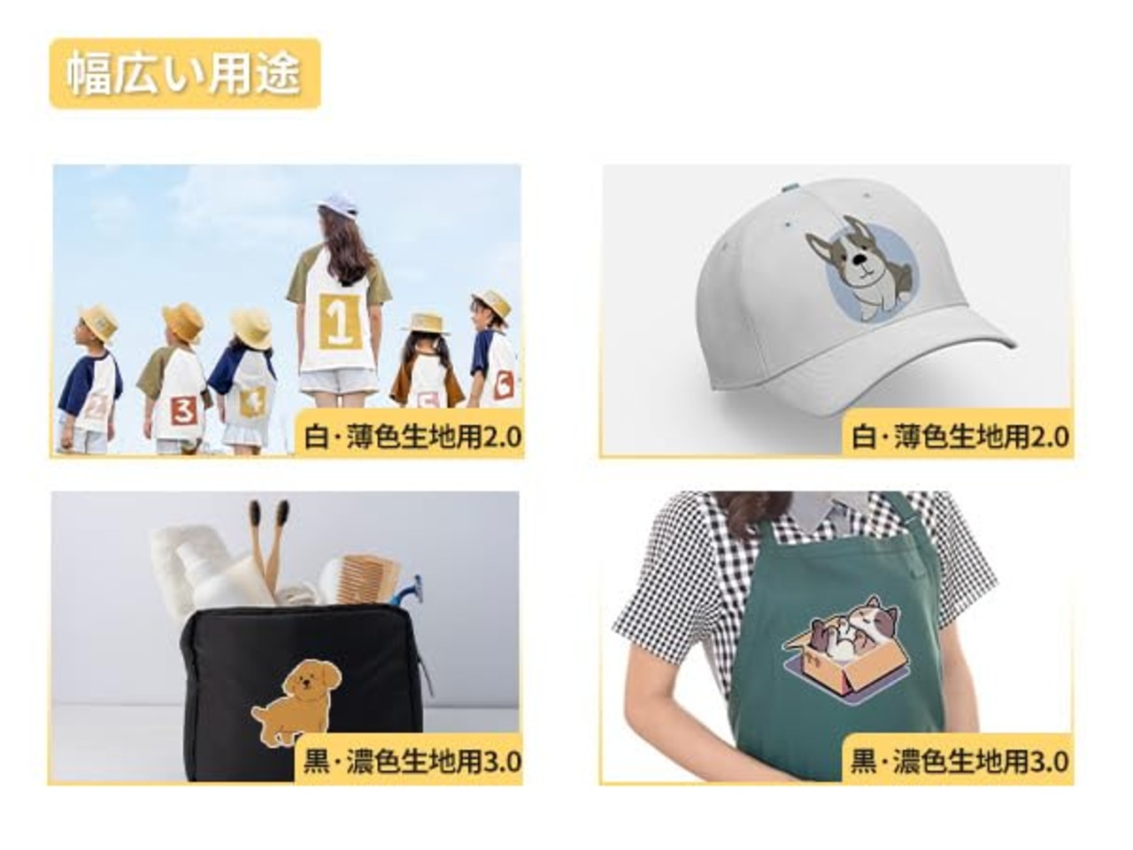 【幅広い使用範囲】:応援もの、帽子、家族服、親子服、チーム服、名前入り 体操服、おそろい セット、ペアtシャツ、事務服など