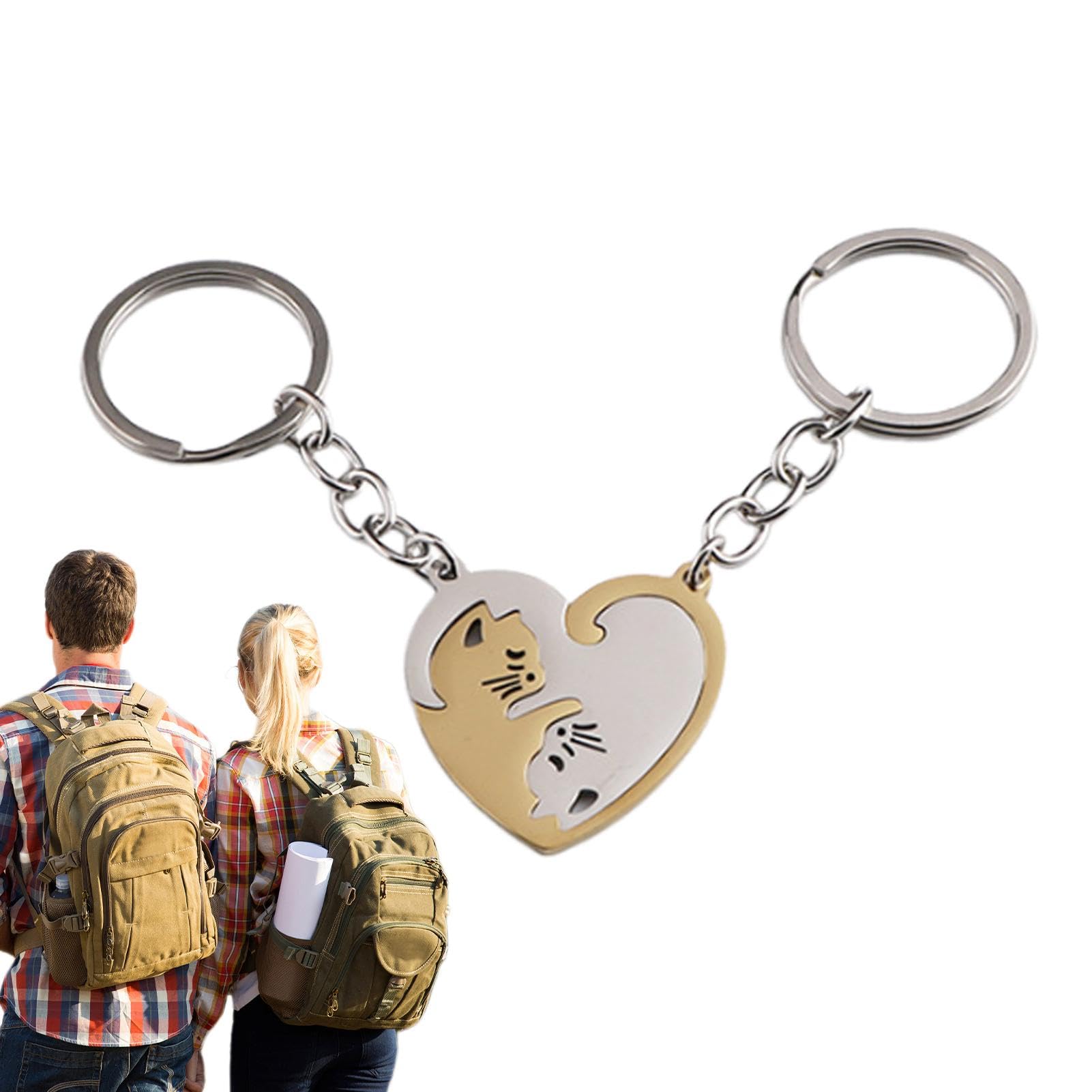 カップル猫キーホルダー、お揃いのキーホルダー |カップル小物ポータブルステンレススチールキーホルダーハート型スプライシング猫陰陽猫キーホルダー 黒と白のマッチングカップルキーホルダー - 彼と彼女のためのハート型キーホルダー