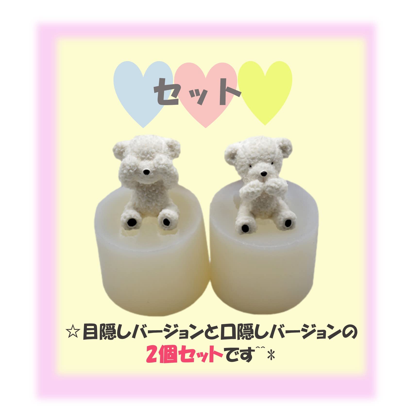 【クマさんモールド】背中もまるっと全て立体のかわいいクマさんが作れます。目隠しバージョンと口隠しバージョンの2個セットです。