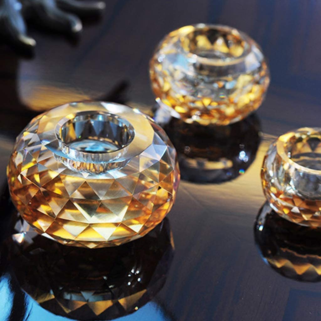 キャンドルホルダー キャンドル立て クリスタルガラスラウンドキャンドルホルダーロマンチックな燭台アロマキャンドルスタンド結婚式の装飾と家の装飾 キャンドルスティックホルダー(Gold,10*10*6cm)